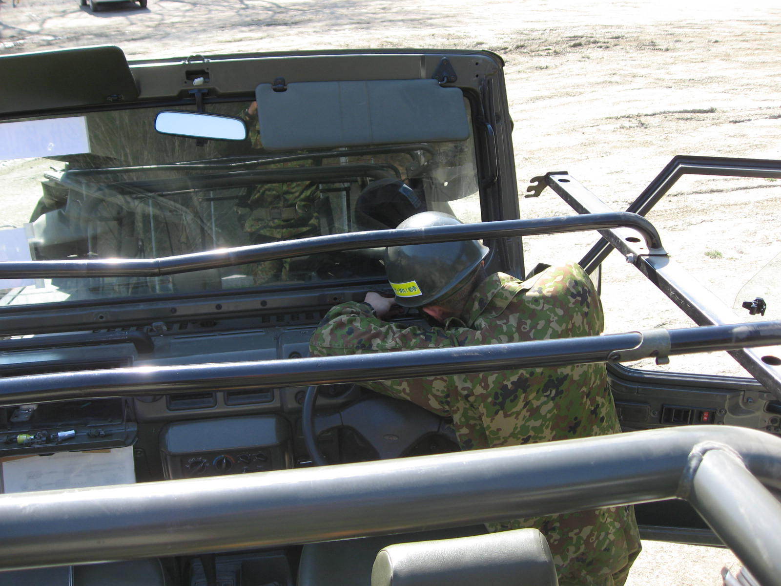 自動車の整備をしている自衛隊員の様子