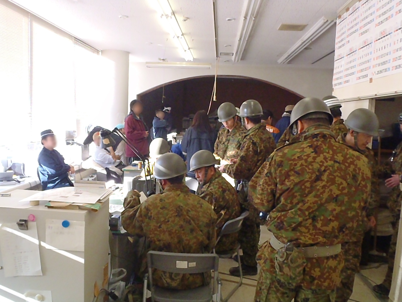 震災対策本部設置 拡大表示 ダウンロード 識別子 : 971 タイトルよみ : サイガイタイサクホンブセッチ 說明・要約 : 中央公民館に設置された災害対策本部で関係者が打合せしている様子 作成者(撮影者) : 大槌町 作成者(撮影者)よみ : オオツチチョウ 提供者 : 提供者よみ : 撮影(作成)場所 : 岩手県上閉伊郡大槌町 災害対策本部 撮影(作成)場所よみ : イワテケンカミヘイグンオオツチチョウ サイガイタイサクホンブ 作成日・撮影日 : 2011年 3月 18日 カテゴリー : 震災対応 その他 その他 地域 : 町方地区 備考 :