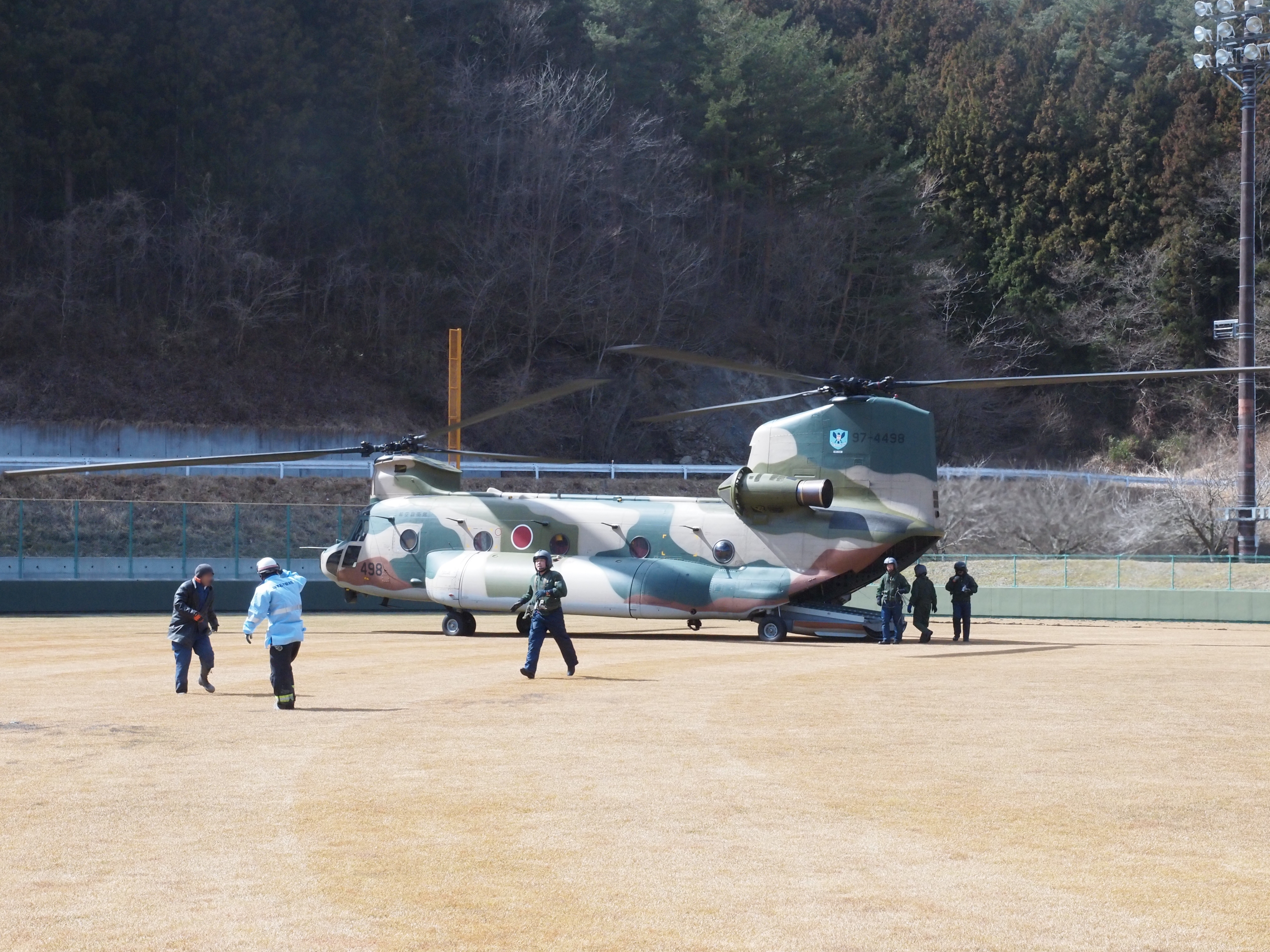自衛隊による救出活動 拡大表示 ダウンロード 識別子 : 1236 タイトルよみ : ジエイタイニヨルキュウシュツカツドウ 說明・要約 : 自衛隊ヘリコプターから降りて寺野運動場へ向かう救出者の様子 作成者(撮影者) : 作成者(撮影者)よみ : 提供者 : 大槌町 提供者よみ : オオツチチョウ 撮影(作成)場所 : 岩手県上閉伊郡大槌町 寺野 撮影(作成)場所よみ : イワテケンカミヘイグンオオツチチョウ テラノ 作成日・撮影日 : 2011年 3月 12日 カテゴリー : 救援活動 救助活動 地域 : 小鎚・臼澤地区 備考 : 震災事象 捜索・救出活動 > 自衛隊と外部応援部隊との協力による救出活動 > 【自衛隊調査屋上から救出】自衛隊の大型ヘリコプターで、庁舎屋上とおよび周辺の避難者を寺野の運動場に搬送。