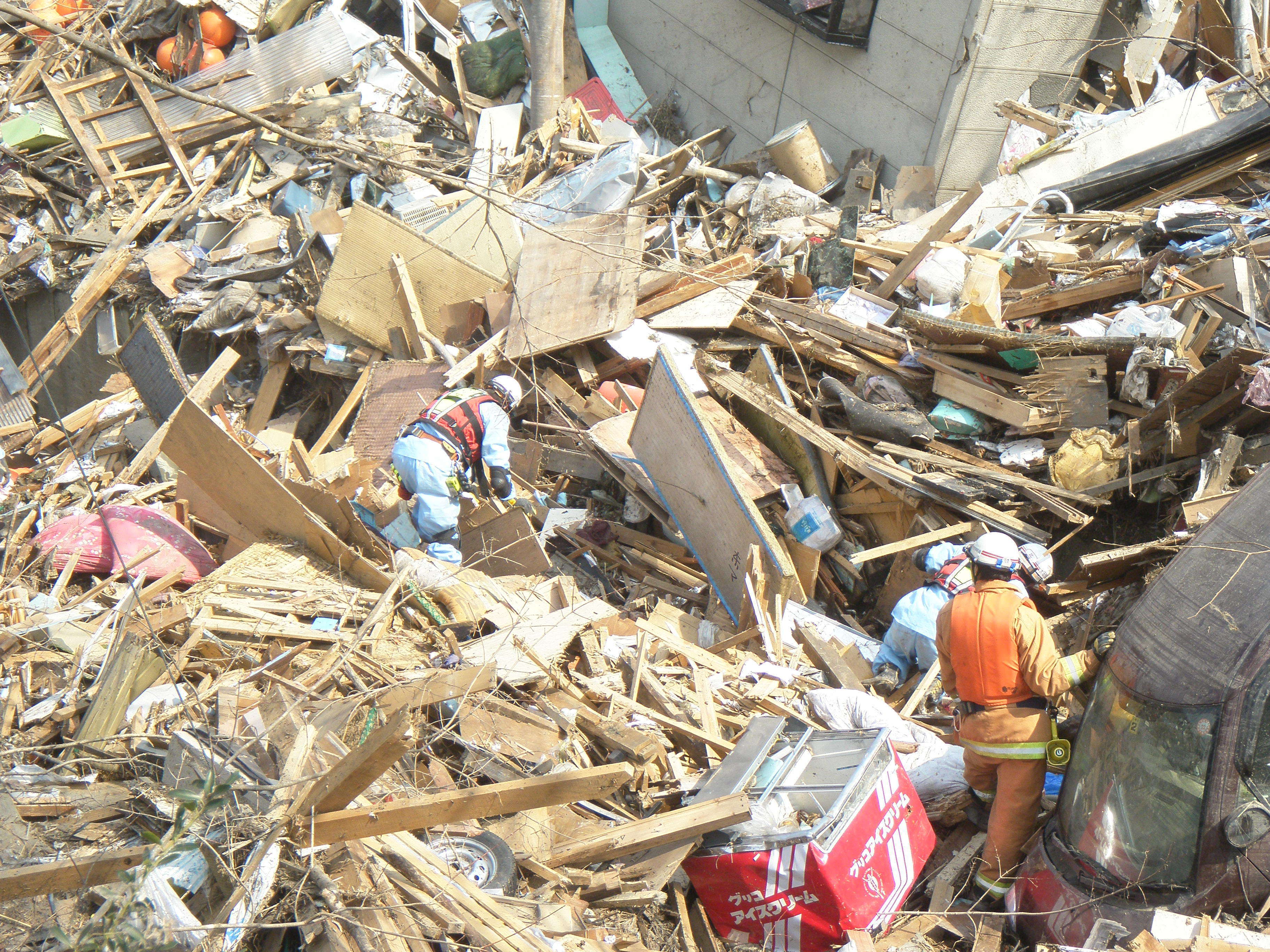 捜索活動の様子 拡大表示 ダウンロード 識別子 : 1263 タイトルよみ : ソウサクカツドウノヨウス 說明・要約 : ガレキの中で捜索活動をしている消防隊員の様子 作成者(撮影者) : 堺市消防局 作成者(撮影者)よみ : サカイシショウボウキョク 提供者 : 堺市消防局 提供者よみ : サカイシショウボウキョク 撮影(作成)場所 : 岩手県上閉伊郡大槌町 花輪田 撮影(作成)場所よみ : イワテケンカミヘイグンオオツチチョウ ハナワダ 作成日・撮影日 : 2011年 3月 13日 カテゴリー : 救助活動 捜索 地域 : 桜木町・花輪田地区 備考 : 堺市消防局提供 震災事象 捜索・救出活動 > 自衛隊と外部応援部隊との協力による救出活動 > 【自衛隊による救出】全国緊急消防救助隊の先着隊が状況確認のため、釜石から大槌に出向。災害対策本部へ。