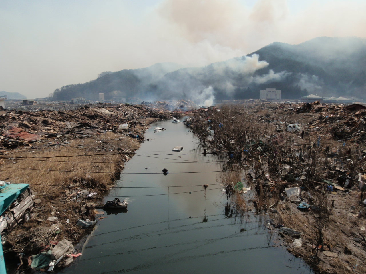被災状況 拡大表示 ダウンロード 識別子 : 1292 タイトルよみ : ヒサイジョウキョウ 說明・要約 : 小鎚川周辺にガレキが散乱している様子、山林からは火災の煙が立ち上っている 作成者(撮影者) : 堺市消防局 作成者(撮影者)よみ : サカイシショウボウキョク 提供者 : 堺市消防局 提供者よみ : サカイシショウボウキョク 撮影(作成)場所 : 岩手県上閉伊郡大槌町 花輪田 撮影(作成)場所よみ : イワテケンカミヘイグンオオツチチョウ ハナワダ 作成日・撮影日 : 2011年 3月 13日 カテゴリー : 被害 物的被害 被災状況 地域 : 桜木町・花輪田地区 備考 : 堺市消防局提供 震災事象 捜索・救出活動 > 自衛隊と外部応援部隊との協力による救出活動 > 【緊急消防救助隊到着】 大槌町での活動のため、片岸までマイクロバスのピストン輸送実施。