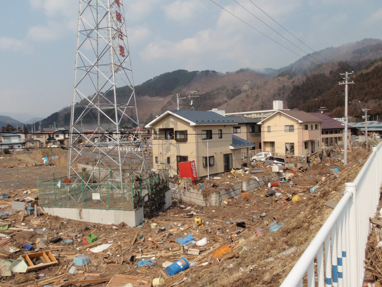 被災状況 拡大表示 ダウンロード 識別子 : 1296 タイトルよみ : ヒサイジョウキョウ 說明・要約 : 住宅地の周囲に散乱しているガレキの様子 作成者(撮影者) : 堺市消防局 作成者(撮影者)よみ : サカイシショウボウキョク 提供者 : 堺市消防局 提供者よみ : サカイシショウボウキョク 撮影(作成)場所 : 岩手県上閉伊郡大槌町 花輪田 撮影(作成)場所よみ : イワテケンカミヘイグンオオツチチョウ ハナワダ 作成日・撮影日 : 2011年 3月 13日 カテゴリー : 物的被害 地域 : 桜木町・花輪田地区 備考 : 堺市消防局提供 震災事象 捜索・救出活動 > 自衛隊と外部応援部隊との協力による救出活動 > 【緊急消防救助隊到着】 大槌町での活動のため、片岸までマイクロバスのピストン輸送実施。