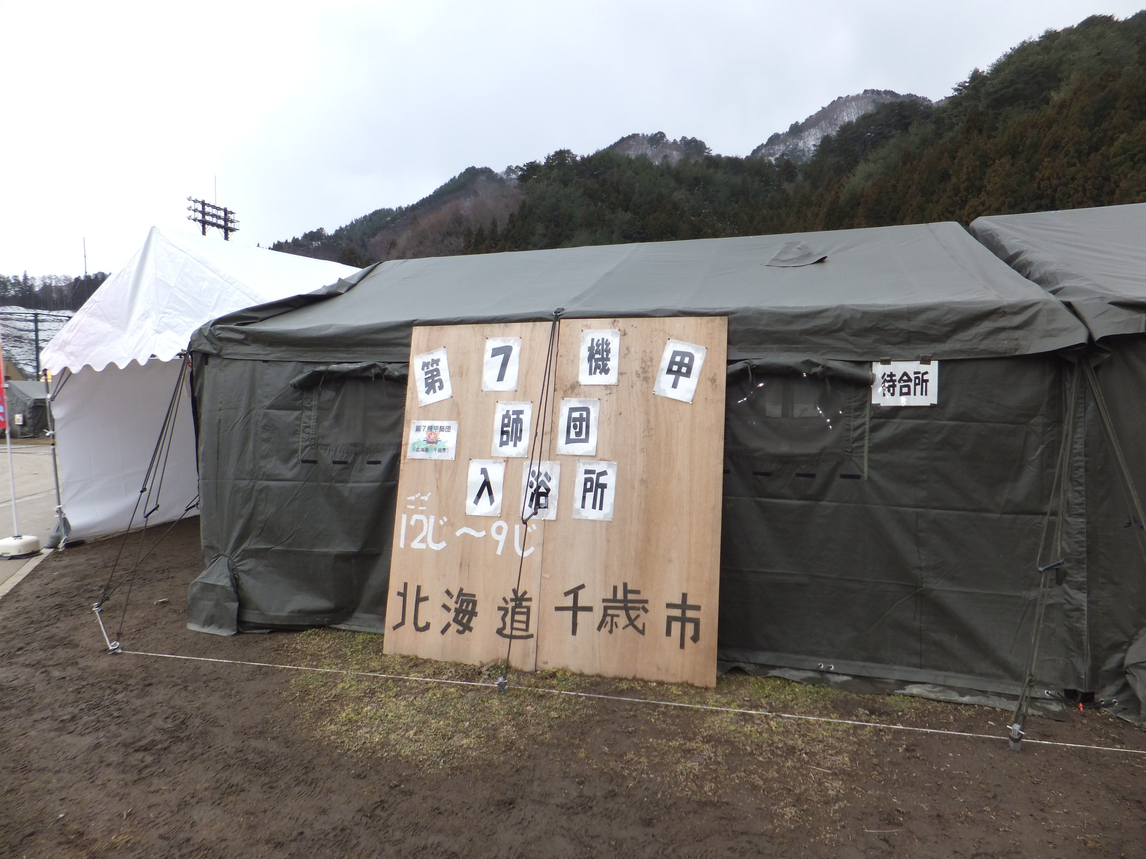 自衛隊による救援活動 拡大表示 ダウンロード 識別子 : 1318 タイトルよみ : ジエイタイニヨルキュウエンカツドウ 說明・要約 : 仮設浴場入口 作成者(撮影者) : 大槌町 作成者(撮影者)よみ : オオツチチョウ 提供者 : 提供者よみ : 撮影(作成)場所 : 岩手県上閉伊郡大槌町 寺野 撮影(作成)場所よみ : イワテケンカミヘイグンオオツチチョウ テラノ 作成日・撮影日 : 2011年 3月 27日 カテゴリー : 被災者支援 地域 : 小鎚・臼澤地区 備考 : 関連アーカイブ 入浴支援 入浴支援 入浴支援 自衛隊による救援活動 自衛隊による救援活動 自衛隊による救援活動 自衛隊による救援活動 震災事象 捜索・救出活動 > 自衛隊と外部応援部隊との協力による救出活動 > 【自衛隊の拠点設置】 自衛隊がサッカー場を野営地に。