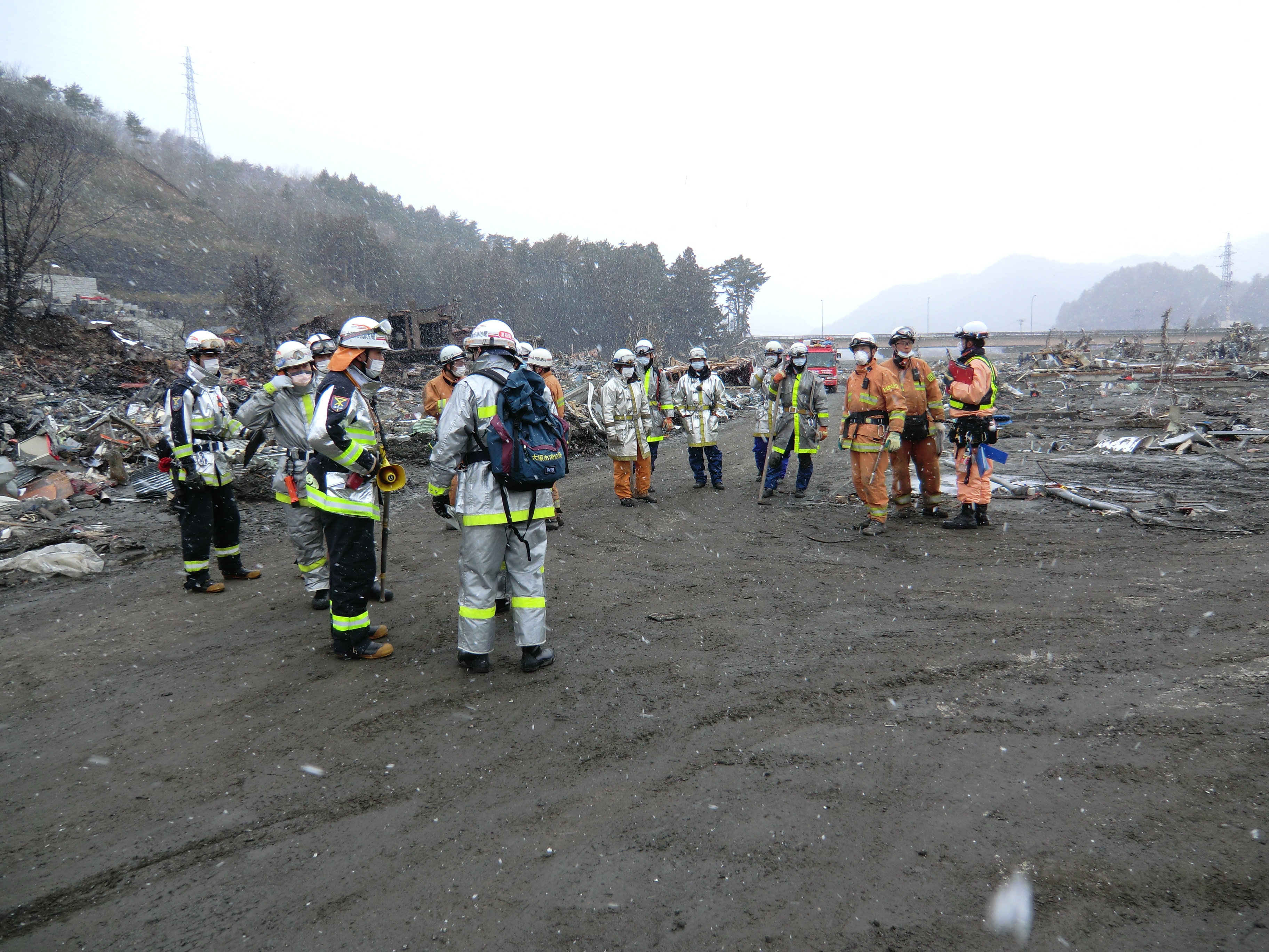 捜索活動の様子 拡大表示 ダウンロード 識別子 : 1332 タイトルよみ : ソウサクカツドウノヨウス 說明・要約 : 捜索活動をしている消防隊員の様子 作成者(撮影者) : 堺市消防局 作成者(撮影者)よみ : サカイシショウボウキョク 提供者 : 堺市消防局 提供者よみ : サカイシショウボウキョク 撮影(作成)場所 : 岩手県上閉伊郡大槌町 末広町 撮影(作成)場所よみ : イワテケンカミヘイグンオオツチチョウ スエヒロチョウ 作成日・撮影日 : 2011年 3月 17日 カテゴリー : 捜索 地域 : 町方地区 備考 : 堺市消防局提供 震災事象 捜索・救出活動 > 自衛隊と外部応援部隊との協力による救出活動 > 緊急消防救助隊が、救助救出活動を実施。