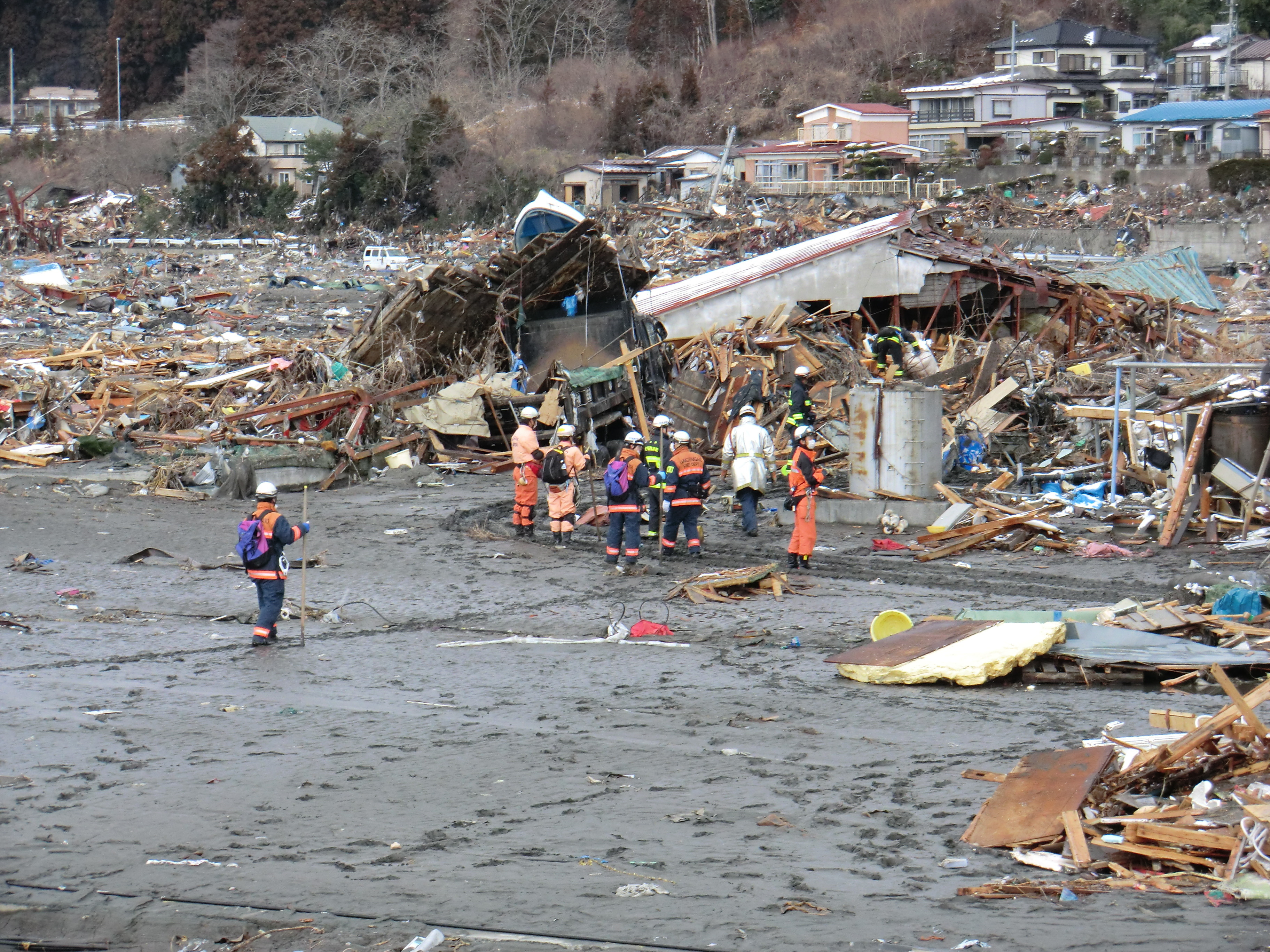 捜索活動の様子 拡大表示 ダウンロード 識別子 : 1351 タイトルよみ : ソウサクカツドウノヨウス 說明・要約 : 辺り一面ガレキの中で捜索活動をしている消防隊員の様子 作成者(撮影者) : 堺市消防局 作成者(撮影者)よみ : サカイシショウボウキョク 提供者 : 堺市消防局 提供者よみ : サカイシショウボウキョク 撮影(作成)場所 : 岩手県上閉伊郡大槌町 大槌町 撮影(作成)場所よみ : イワテケンカミヘイグンオオツチチョウ オオツチチョウ 作成日・撮影日 : 2011年 3月 17日 カテゴリー : 捜索 地域 : その他 備考 : 堺市消防局提供 震災事象 捜索・救出活動 > 自衛隊と外部応援部隊との協力による救出活動 > 緊急消防救助隊が、救助救出活動を実施。