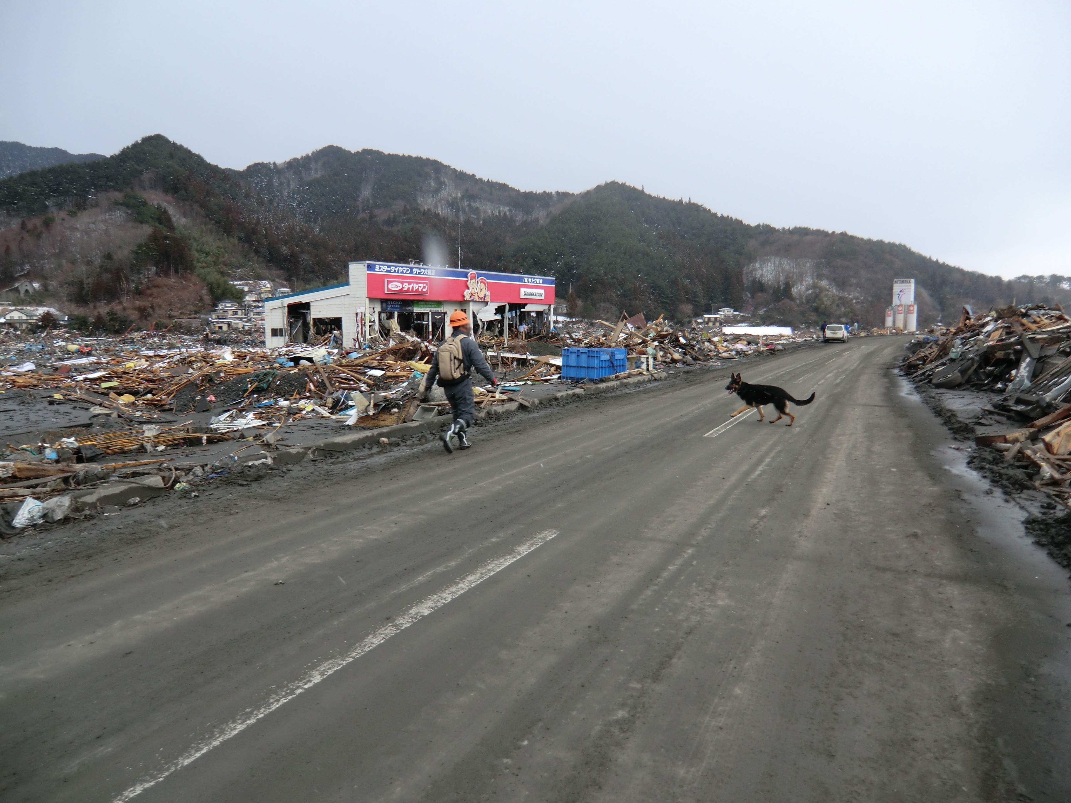 捜索活動の様子 拡大表示 ダウンロード 識別子 : 1353 タイトルよみ : ソウサクカツドウノヨウス 說明・要約 : 救助犬を連れて捜索活動をしている様子 作成者(撮影者) : 堺市消防局 作成者(撮影者)よみ : サカイシショウボウキョク 提供者 : 堺市消防局 提供者よみ : サカイシショウボウキョク 撮影(作成)場所 : 岩手県上閉伊郡大槌町 撮影(作成)場所よみ : イワテケンカミヘイグンオオツチチョウ 作成日・撮影日 : 2011年 3月 17日 カテゴリー : 捜索 地域 : 町方地区 備考 : 堺市消防局提供 震災事象 捜索・救出活動 > 自衛隊と外部応援部隊との協力による救出活動 > 緊急消防救助隊が、救助救出活動を実施。