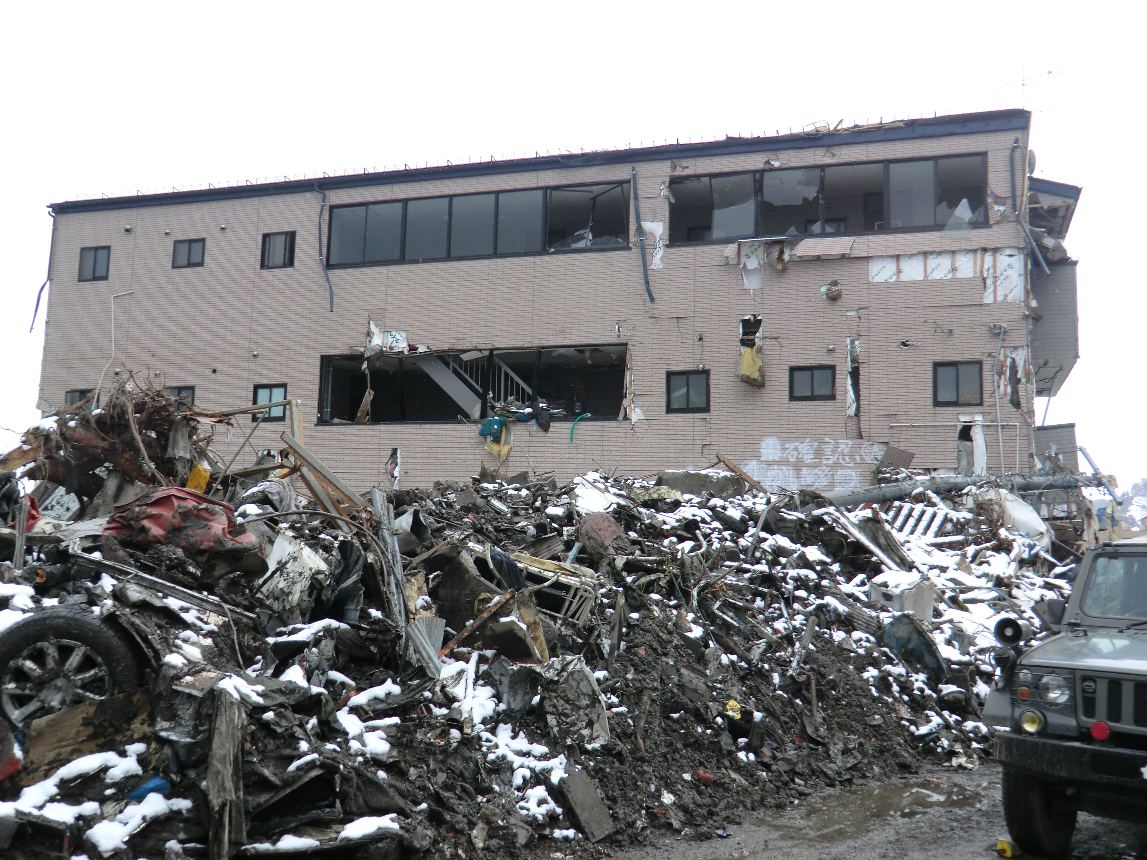 捜索活動の様子 拡大表示 ダウンロード 識別子 : 1369 タイトルよみ : ソウサクカツドウノヨウス 說明・要約 : 被災した建物と周辺のガレキ、捜索車両の様子 作成者(撮影者) : 堺市消防局 作成者(撮影者)よみ : サカイシショウボウキョク 提供者 : 堺市消防局 提供者よみ : サカイシショウボウキョク 撮影(作成)場所 : 岩手県上閉伊郡大槌町 大槌町 撮影(作成)場所よみ : イワテケンカミヘイグンオオツチチョウ オオツチチョウ 作成日・撮影日 : 2011年 3月 17日 カテゴリー : 捜索活動 地域 : その他 備考 : 堺市消防局提供 震災事象 捜索・救出活動 > 自衛隊と外部応援部隊との協力による救出活動 > 緊急消防救助隊が、救助救出活動を実施。