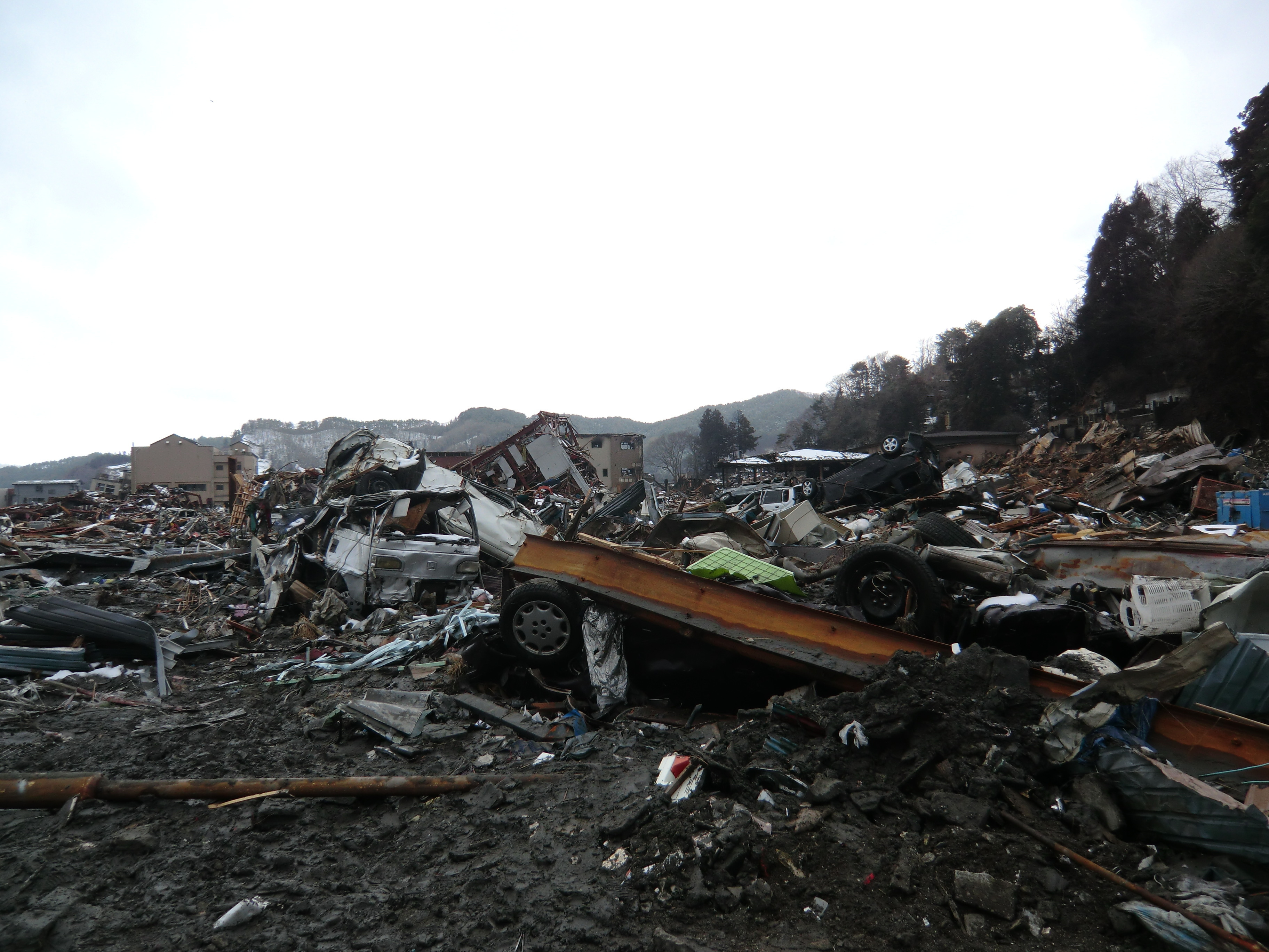 被災状況 拡大表示 ダウンロード 識別子 : 1370 タイトルよみ : ヒサイジョウキョウ 說明・要約 : 被災した車の残骸が散乱している様子 作成者(撮影者) : 堺市消防局 作成者(撮影者)よみ : サカイシショウボウキョク 提供者 : 堺市消防局 提供者よみ : サカイシショウボウキョク 撮影(作成)場所 : 岩手県上閉伊郡大槌町 大槌町 撮影(作成)場所よみ : イワテケンカミヘイグンオオツチチョウ オオツチチョウ 作成日・撮影日 : 2011年 3月 17日 カテゴリー : 物的被害 地域 : その他 備考 : 堺市消防局提供 震災事象 捜索・救出活動 > 自衛隊と外部応援部隊との協力による救出活動 > 緊急消防救助隊が、救助救出活動を実施。