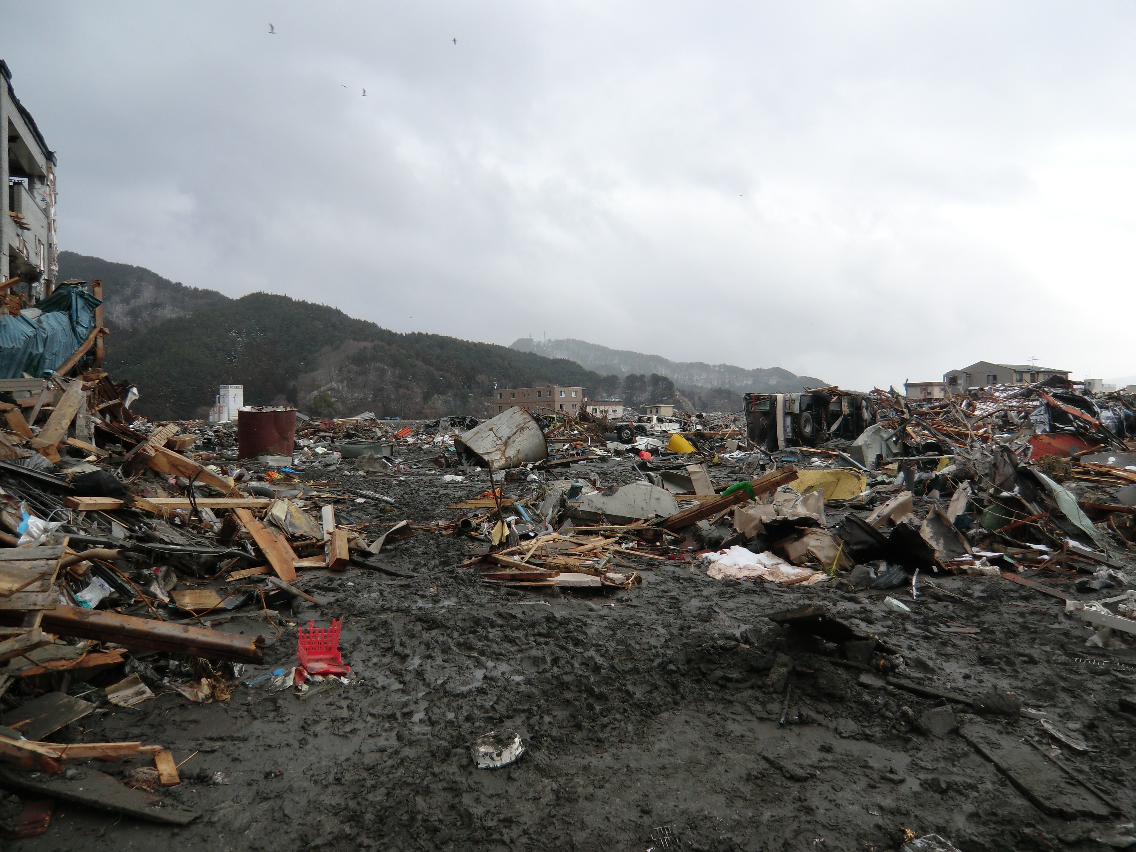 被災状況 拡大表示 ダウンロード 識別子 : 1371 タイトルよみ : ヒサイジョウキョウ 說明・要約 : 辺り一面ガレキと土砂で埋め尽くされている様子 作成者(撮影者) : 堺市消防局 作成者(撮影者)よみ : サカイシショウボウキョク 提供者 : 堺市消防局 提供者よみ : サカイシショウボウキョク 撮影(作成)場所 : 岩手県上閉伊郡大槌町 大槌町 撮影(作成)場所よみ : イワテケンカミヘイグンオオツチチョウ オオツチチョウ 作成日・撮影日 : 2011年 3月 17日 カテゴリー : 物的被害 地域 : その他 備考 : 堺市消防局提供 震災事象 捜索・救出活動 > 自衛隊と外部応援部隊との協力による救出活動 > 緊急消防救助隊が、救助救出活動を実施。