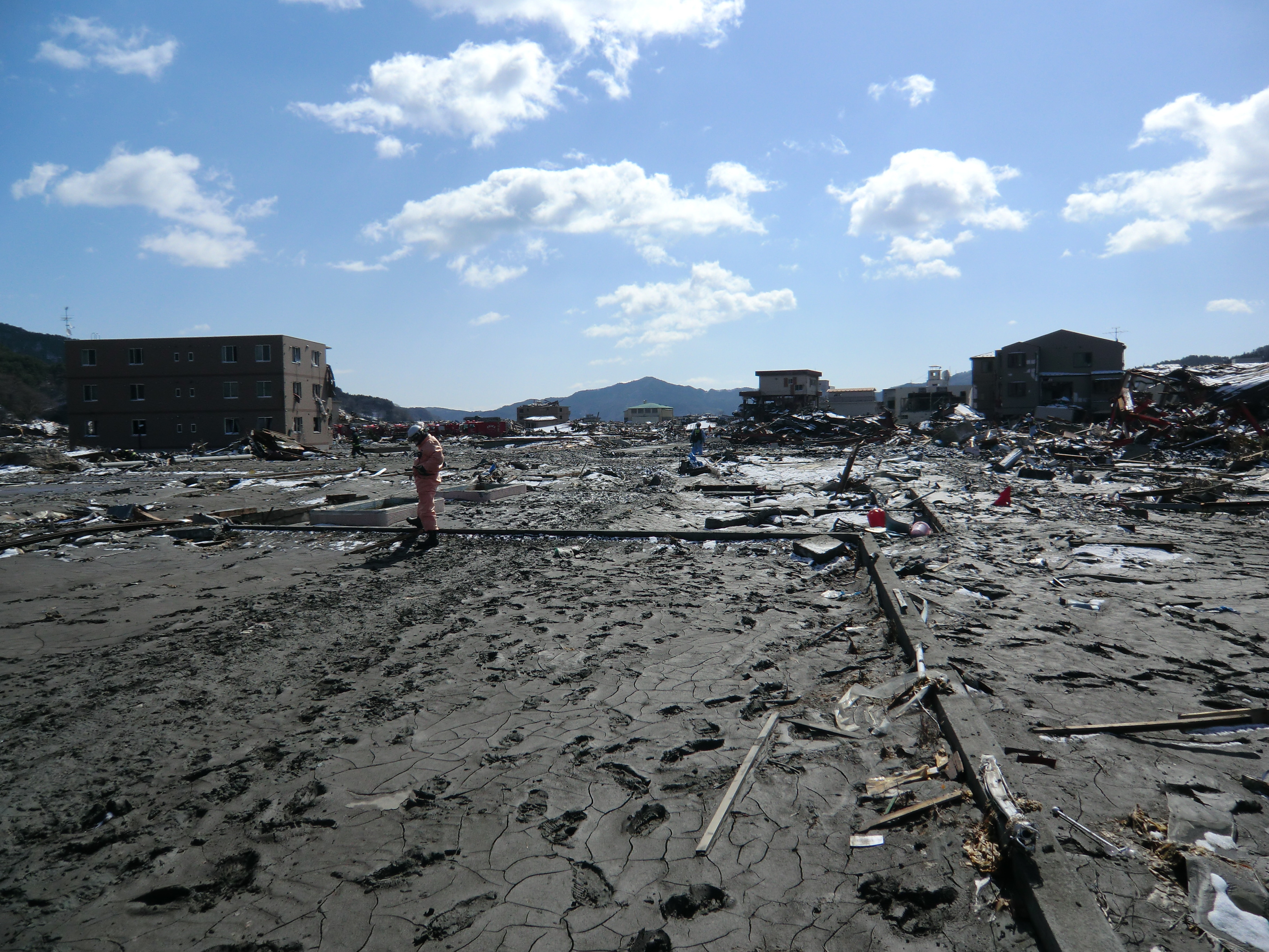 捜索活動の様子 拡大表示 ダウンロード 識別子 : 1410 タイトルよみ : ソウサクカツドウノヨウス 說明・要約 : 土砂とガレキの中で捜索活動をしている消防隊員の様子 作成者(撮影者) : 堺市消防局 作成者(撮影者)よみ : サカイシショウボウキョク 提供者 : 堺市消防局 提供者よみ : サカイシショウボウキョク 撮影(作成)場所 : 岩手県上閉伊郡大槌町 撮影(作成)場所よみ : イワテケンカミヘイグンオオツチチョウ 作成日・撮影日 : 2011年 3月 18日 カテゴリー : 捜索 地域 : 町方地区 備考 : 堺市消防局提供 震災事象 捜索・救出活動 > 遺体捜索 救護 > 緊急消防救助隊でローラー作戦を実施。全国緊急消防隊の活動終了。