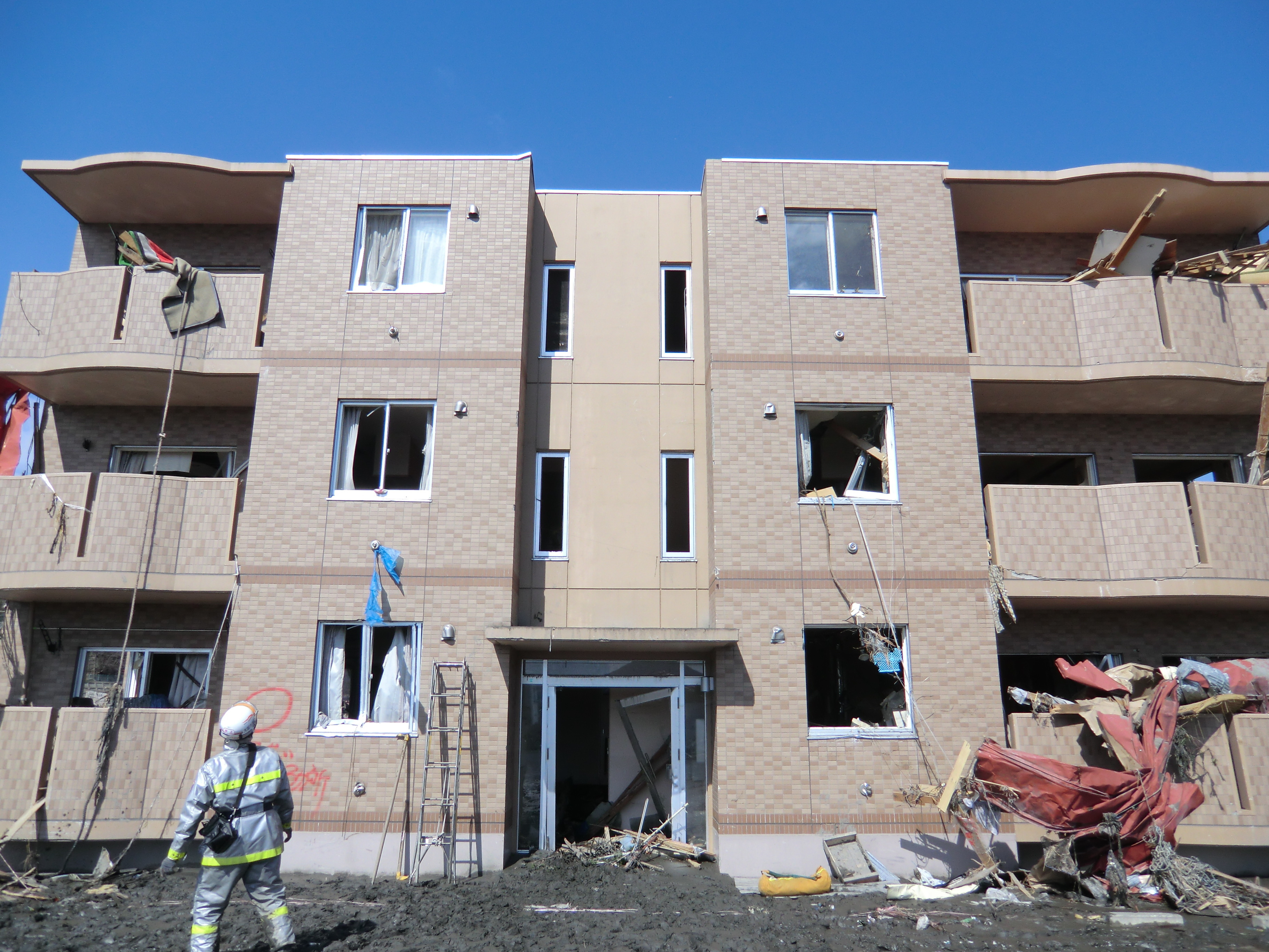 捜索活動の様子 拡大表示 ダウンロード 識別子 : 1424 タイトルよみ : ソウサクカツドウノヨウス 說明・要約 : 被災した建物の状況を見ている消防隊員の様子 作成者(撮影者) : 堺市消防局 作成者(撮影者)よみ : サカイシショウボウキョク 提供者 : 堺市消防局 提供者よみ : サカイシショウボウキョク 撮影(作成)場所 : 岩手県上閉伊郡大槌町 撮影(作成)場所よみ : イワテケンカミヘイグンオオツチチョウ 作成日・撮影日 : 2011年 3月 18日 カテゴリー : 捜索 地域 : 町方地区 備考 : 堺市消防局提供 震災事象 捜索・救出活動 > 遺体捜索 救護 > 緊急消防救助隊でローラー作戦を実施。全国緊急消防隊の活動終了。