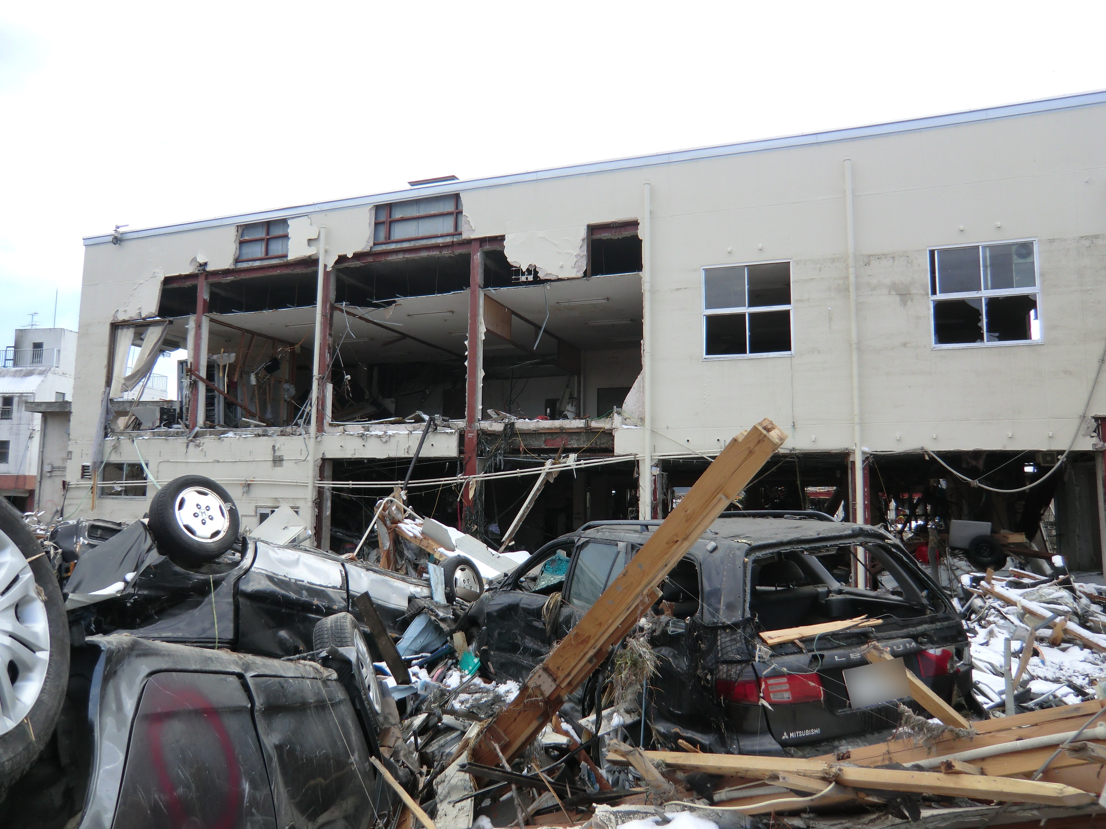 被災状況 拡大表示 ダウンロード 識別子 : 1486 タイトルよみ : ヒサイジョウキョウ 說明・要約 : 被災した旧大槌町役場庁舎の外観と、周辺にガレキと損壊した車両が散乱している様子 作成者(撮影者) : 堺市消防局 作成者(撮影者)よみ : サカイシショウボウキョク 提供者 : 堺市消防局 提供者よみ : サカイシショウボウキョク 撮影(作成)場所 : 岩手県上閉伊郡大槌町 旧役場庁舎 撮影(作成)場所よみ : イワテケンカミヘイグンオオツチチョウ キュウヤクバチョウシャ 作成日・撮影日 : 2011年 3月 18日 カテゴリー : 物的被害 地域 : 町方地区 備考 : 堺市消防局提供 震災事象 捜索・救出活動 > 遺体捜索 救護 > 緊急消防救助隊でローラー作戦を実施。全国緊急消防隊の活動終了。