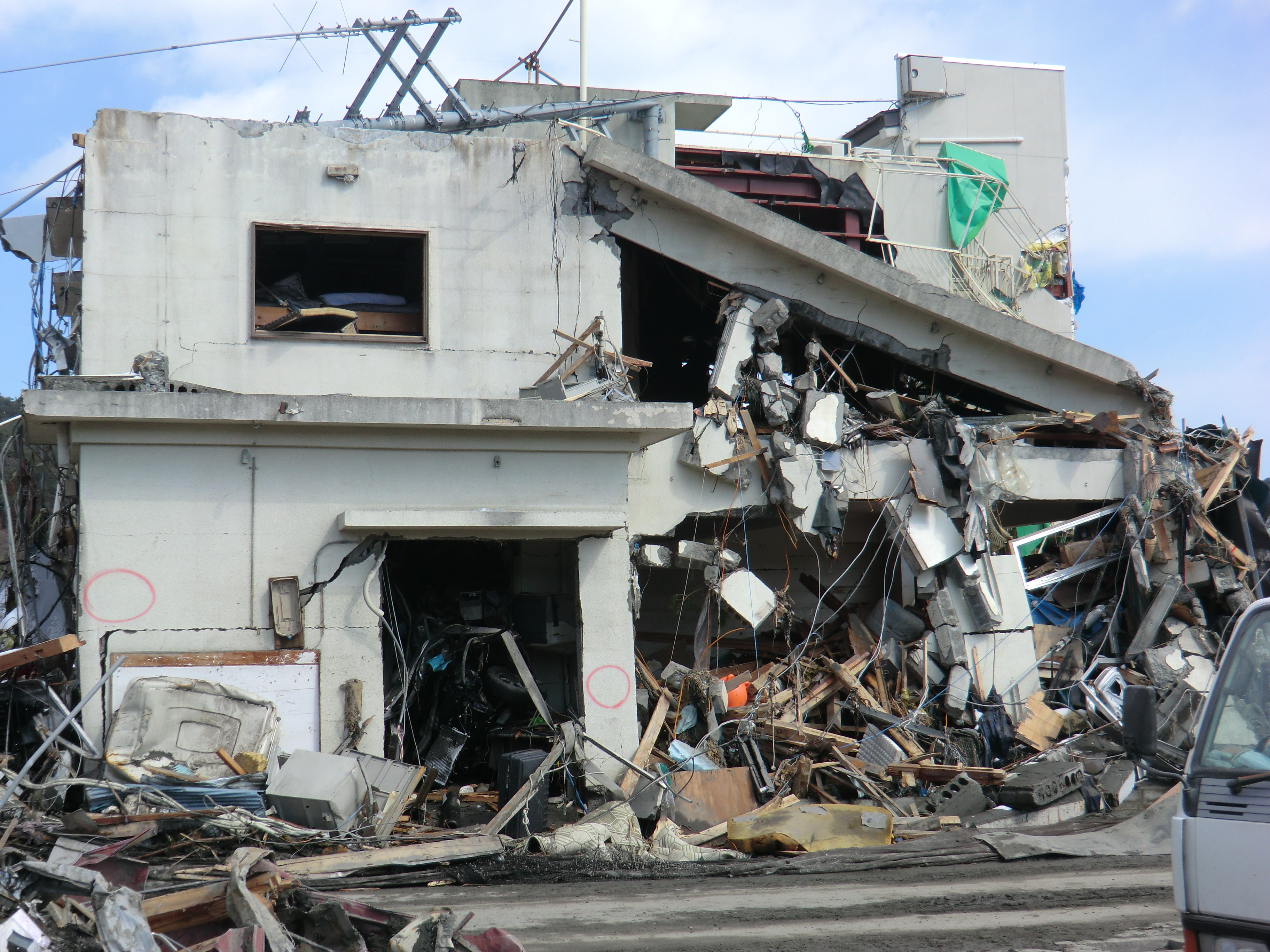 被災状況 拡大表示 ダウンロード 識別子 : 1491 タイトルよみ : ヒサイジョウキョウ 說明・要約 : 被災した建物と周辺のガレキの様子 作成者(撮影者) : 堺市消防局 作成者(撮影者)よみ : サカイシショウボウキョク 提供者 : 堺市消防局 提供者よみ : サカイシショウボウキョク 撮影(作成)場所 : 岩手県上閉伊郡大槌町 撮影(作成)場所よみ : イワテケンカミヘイグンオオツチチョウ 作成日・撮影日 : 2011年 3月 18日 カテゴリー : 物的被害 地域 : 町方地区 備考 : 堺市消防局提供 震災事象 捜索・救出活動 > 遺体捜索 救護 > 緊急消防救助隊でローラー作戦を実施。全国緊急消防隊の活動終了。