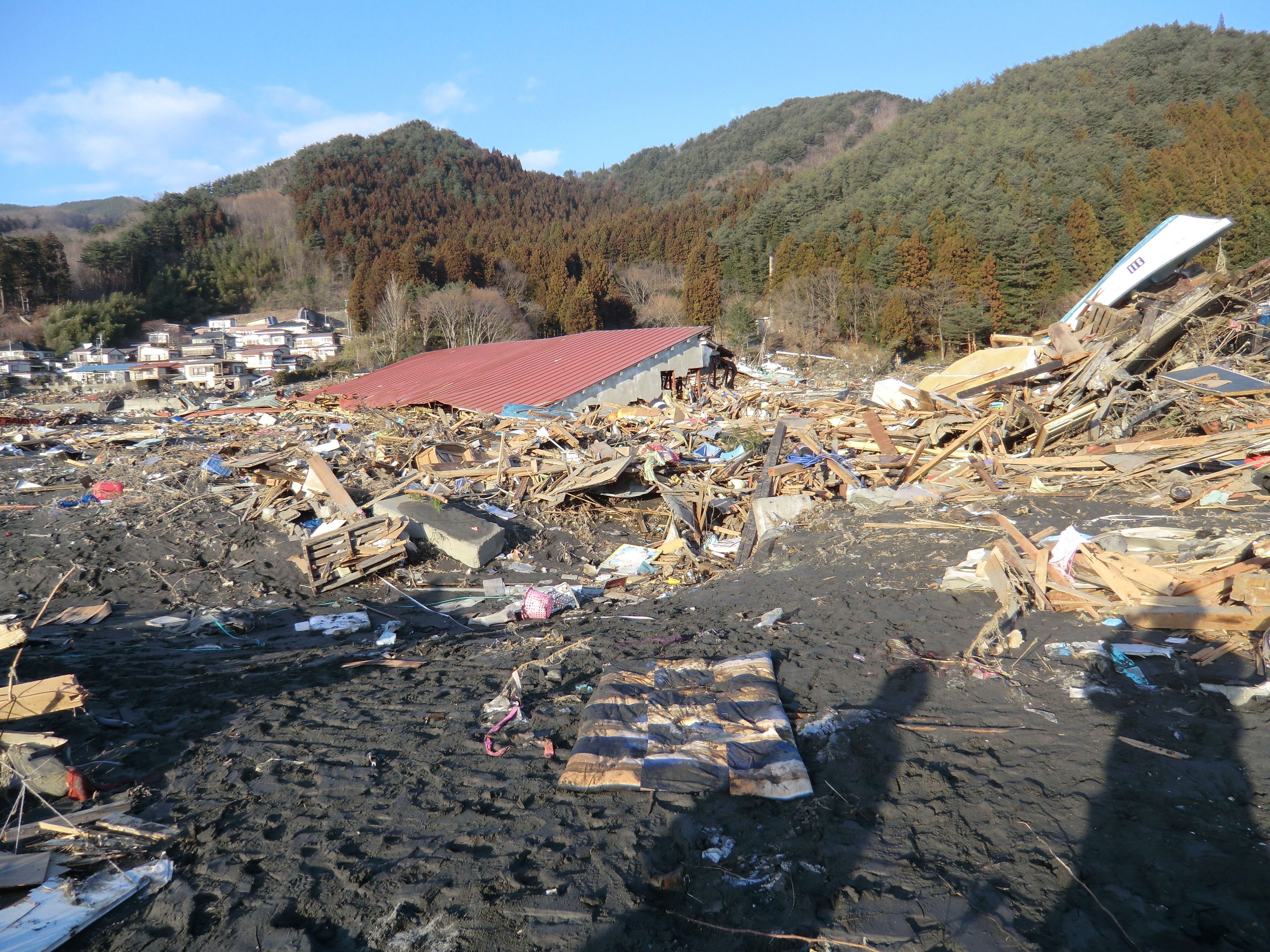 被災状況 拡大表示 ダウンロード 識別子 : 1509 タイトルよみ : ヒサイジョウキョウ 說明・要約 : 家屋の屋根、ガレキ、土砂で埋め尽くされている様子 作成者(撮影者) : 堺市消防局 作成者(撮影者)よみ : サカイシショウボウキョク 提供者 : 堺市消防局 提供者よみ : サカイシショウボウキョク 撮影(作成)場所 : 岩手県上閉伊郡大槌町 大槌町 撮影(作成)場所よみ : イワテケンカミヘイグンオオツチチョウ オオツチチョウ 作成日・撮影日 : 2011年 3月 18日 カテゴリー : 物的被害 地域 : その他 備考 : 堺市消防局提供 震災事象 捜索・救出活動 > 遺体捜索 救護 > 緊急消防救助隊でローラー作戦を実施。全国緊急消防隊の活動終了。