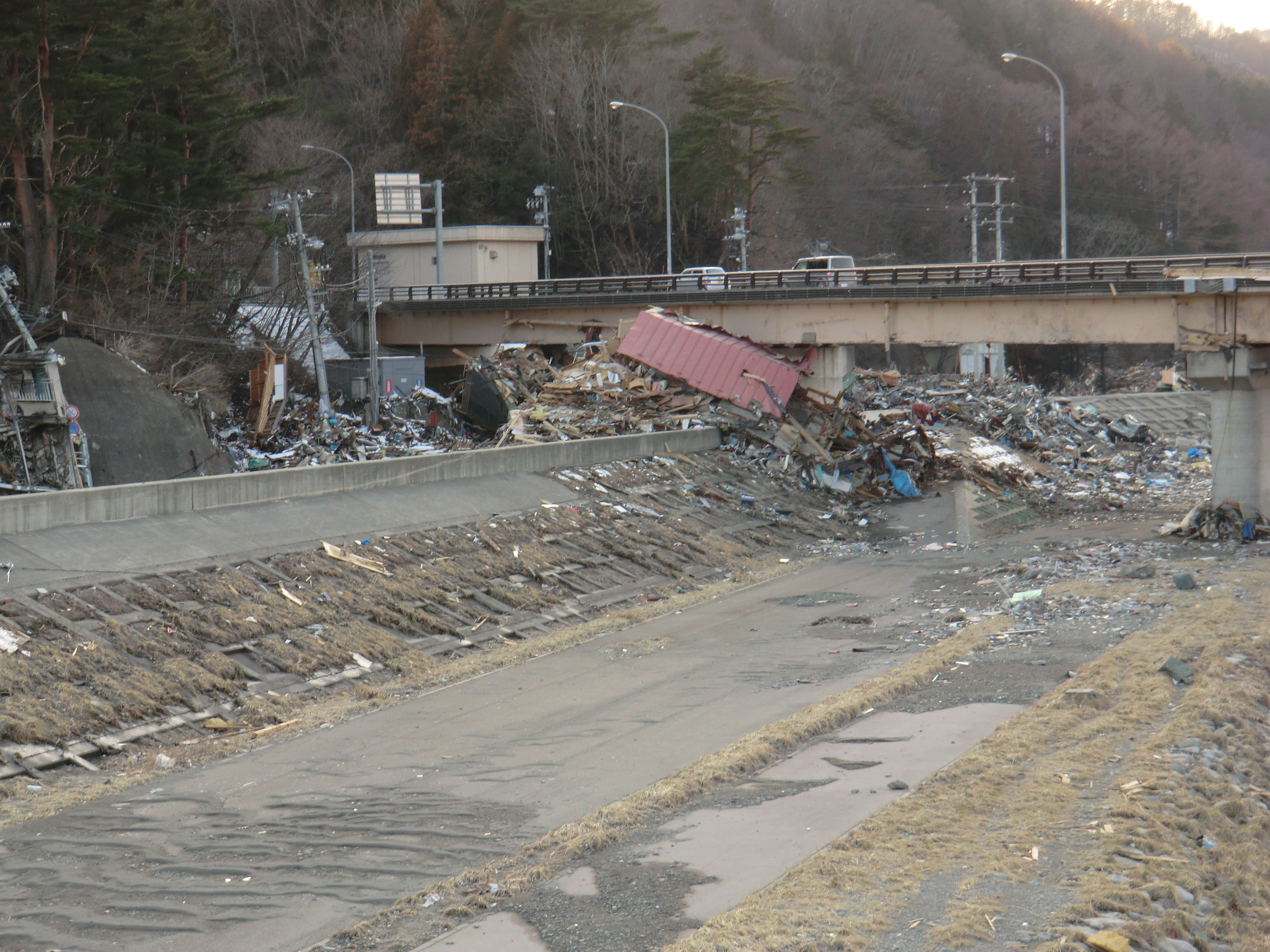 被災状況 拡大表示 ダウンロード 識別子 : 1519 タイトルよみ : ヒサイジョウキョウ 說明・要約 : 大槌川国道45号線橋の橋脚にガレキが引っかかっている様子 作成者(撮影者) : 堺市消防局 作成者(撮影者)よみ : サカイシショウボウキョク 提供者 : 堺市消防局 提供者よみ : サカイシショウボウキョク 撮影(作成)場所 : 岩手県上閉伊郡大槌町 大槌町 撮影(作成)場所よみ : イワテケンカミヘイグンオオツチチョウ オオツチチョウ 作成日・撮影日 : 2011年 3月 18日 カテゴリー : 物的被害 地域 : その他 備考 : 堺市消防局提供 震災事象 捜索・救出活動 > 遺体捜索 救護 > 緊急消防救助隊でローラー作戦を実施。全国緊急消防隊の活動終了。