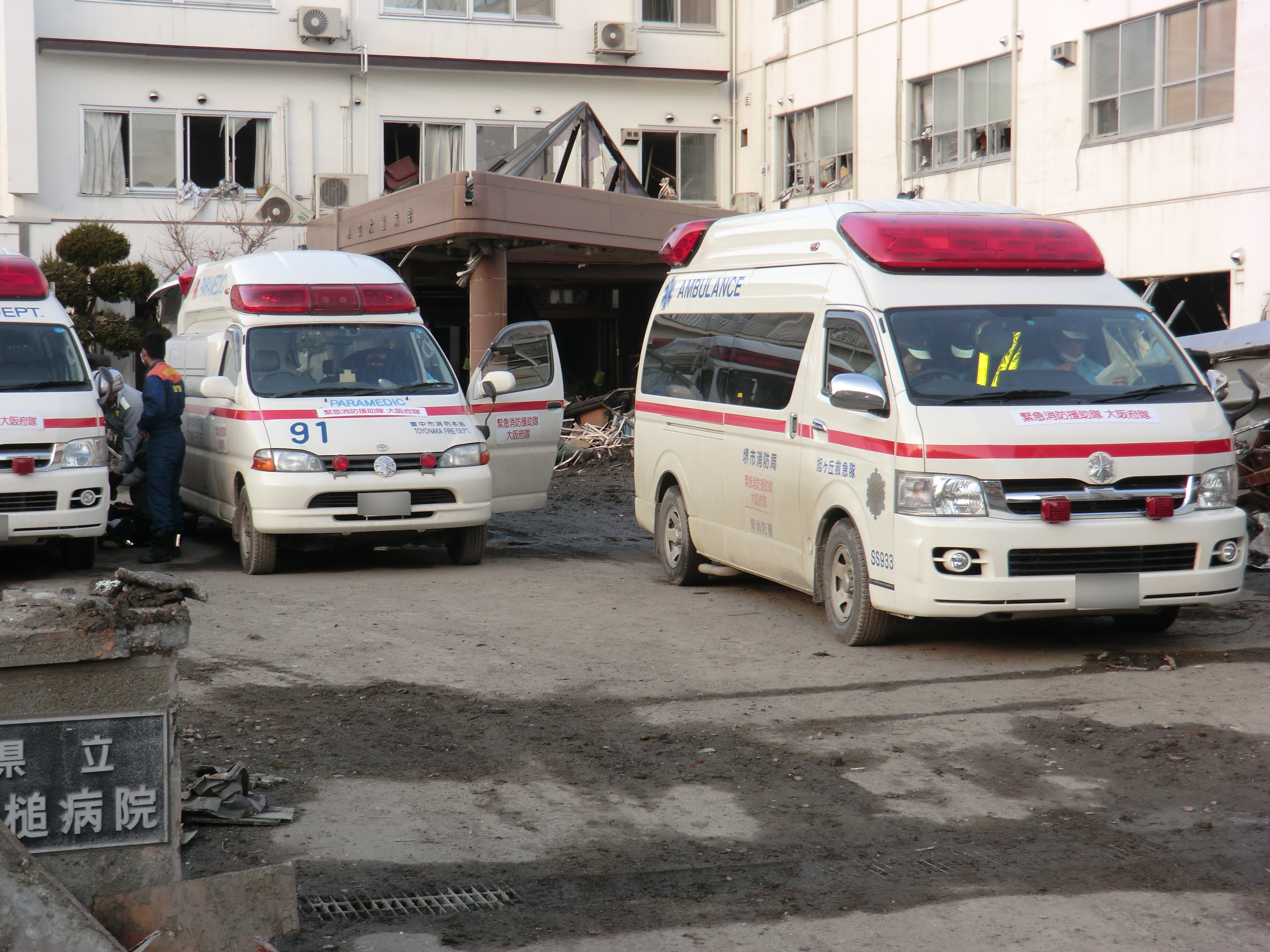 捜索活動の様子 拡大表示 ダウンロード 識別子 : 1530 タイトルよみ : ソウサクカツドウノヨウス 說明・要約 : 旧県立大槌病院玄関前に緊急消防援助隊大阪府隊の救急車両が駐車している様子 作成者(撮影者) : 堺市消防局 作成者(撮影者)よみ : サカイシショウボウキョク 提供者 : 堺市消防局 提供者よみ : サカイシショウボウキョク 撮影(作成)場所 : 岩手県上閉伊郡大槌町 大槌病院 撮影(作成)場所よみ : イワテケンカミヘイグンオオツチチョウ オオツチビョウイン 作成日・撮影日 : 2011年 3月 18日 カテゴリー : 物的被害 捜索 地域 : 町方地区 備考 : 堺市消防局提供 震災事象 捜索・救出活動 > 遺体捜索 救護 > 緊急消防救助隊でローラー作戦を実施。全国緊急消防隊の活動終了。