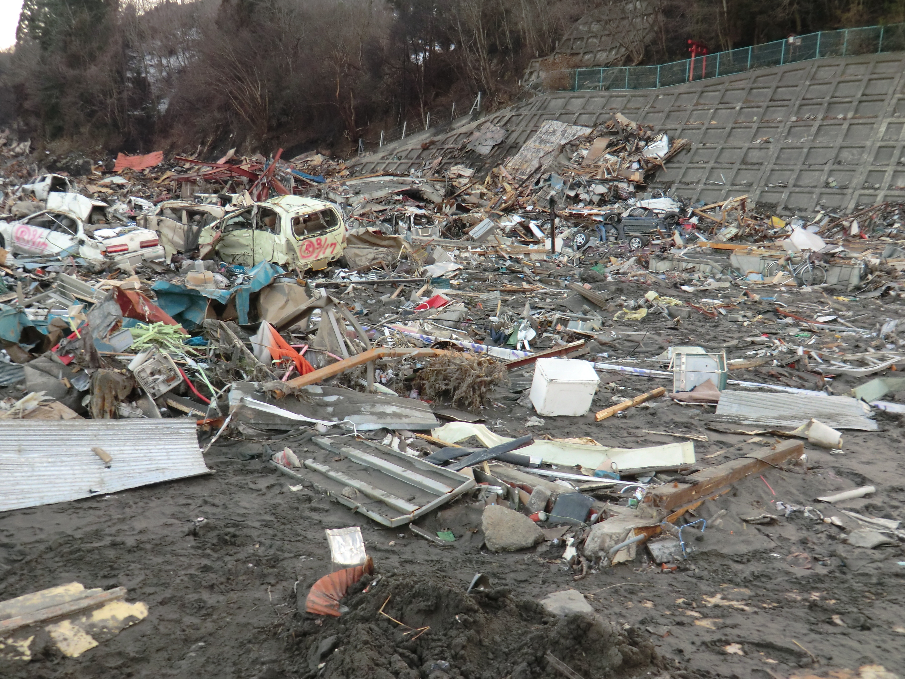 被災状況 拡大表示 ダウンロード 識別子 : 1533 タイトルよみ : ヒサイジョウキョウ 說明・要約 : 辺り一面ガレキ、土砂で埋め尽くされている様子 作成者(撮影者) : 堺市消防局 作成者(撮影者)よみ : サカイシショウボウキョク 提供者 : 堺市消防局 提供者よみ : サカイシショウボウキョク 撮影(作成)場所 : 岩手県上閉伊郡大槌町 末広町 撮影(作成)場所よみ : イワテケンカミヘイグンオオツチチョウ スエヒロチョウ 作成日・撮影日 : 2011年 3月 18日 カテゴリー : 物的被害 地域 : 町方地区 備考 : 堺市消防局提供 震災事象 捜索・救出活動 > 遺体捜索 救護 > 緊急消防救助隊でローラー作戦を実施。全国緊急消防隊の活動終了。