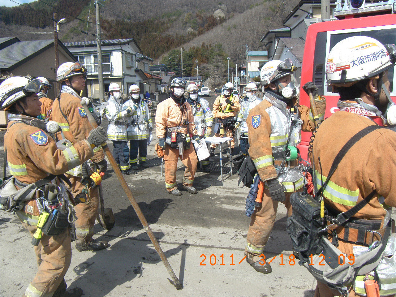 捜索活動の様子 拡大表示 ダウンロード 識別子 : 1560 タイトルよみ : ソウサクカツドウノヨウス 說明・要約 : 捜索活動をしている消防隊員が集合している様子 作成者(撮影者) : 堺市消防局 作成者(撮影者)よみ : サカイシショウボウキョク 提供者 : 堺市消防局 提供者よみ : サカイシショウボウキョク 撮影(作成)場所 : 岩手県上閉伊郡大槌町 桜木町 撮影(作成)場所よみ : イワテケンカミヘイグンオオツチチョウ サクラギチョウ 作成日・撮影日 : 2011年 3月 18日 カテゴリー : 捜索 地域 : 桜木町・花輪田地区 備考 : 堺市消防局提供 震災事象 捜索・救出活動 > 遺体捜索 救護 > 緊急消防救助隊でローラー作戦を実施。全国緊急消防隊の活動終了。