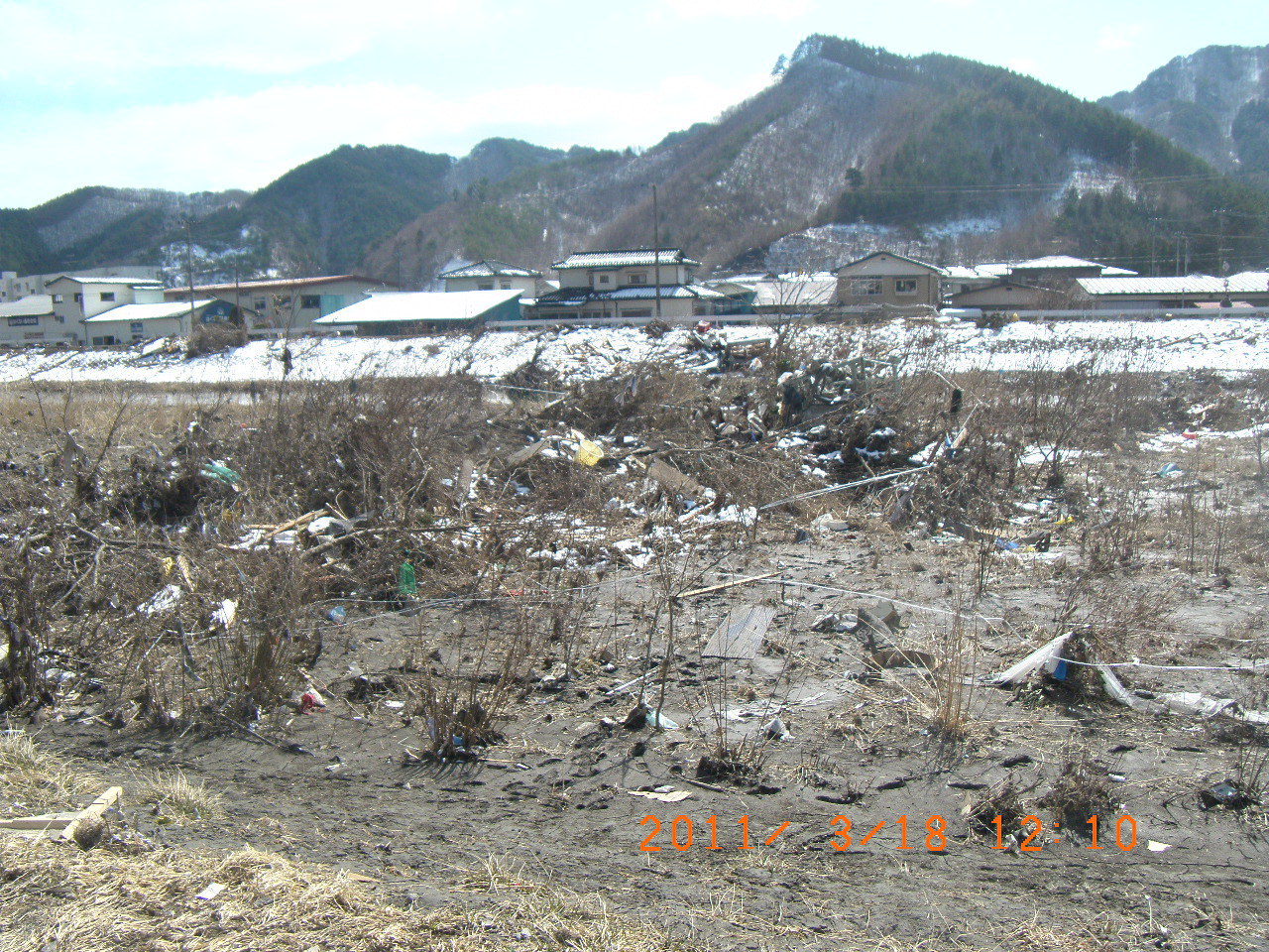 捜索活動の様子 拡大表示 ダウンロード 識別子 : 1565 タイトルよみ : ソウサクカツドウノヨウス 說明・要約 : 捜索活動をしているガレキが散乱している河川の様子 作成者(撮影者) : 堺市消防局 作成者(撮影者)よみ : サカイシショウボウキョク 提供者 : 堺市消防局 提供者よみ : サカイシショウボウキョク 撮影(作成)場所 : 岩手県上閉伊郡大槌町 桜木町 撮影(作成)場所よみ : イワテケンカミヘイグンオオツチチョウ サクラギチョウ 作成日・撮影日 : 2011年 3月 18日 カテゴリー : 物的被害 地域 : 桜木町・花輪田地区 備考 : 堺市消防局提供 震災事象 捜索・救出活動 > 遺体捜索 救護 > 緊急消防救助隊でローラー作戦を実施。全国緊急消防隊の活動終了。