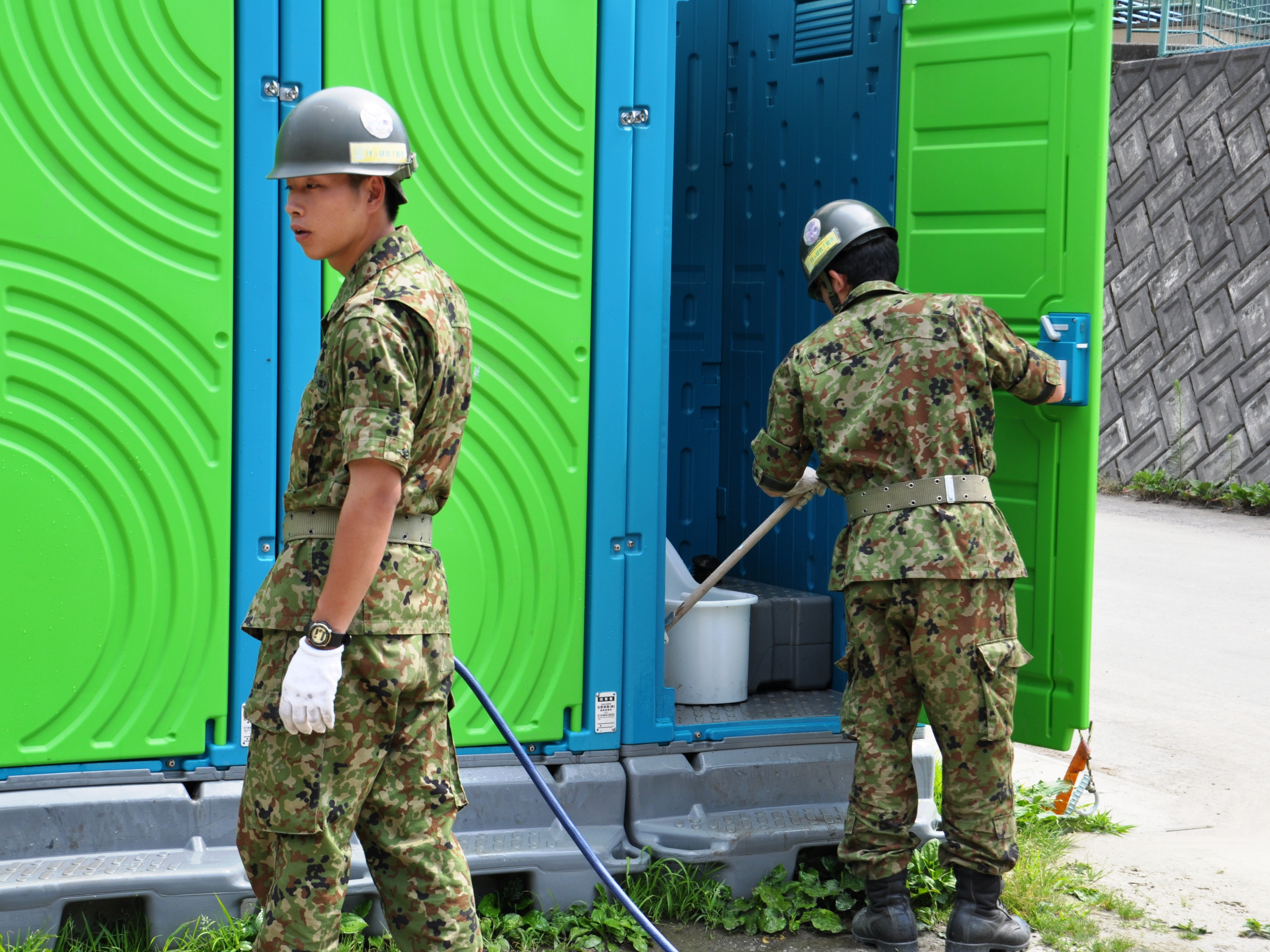 自衛隊災害派遣支援基地撤収 拡大表示 ダウンロード 識別子 : 1688 タイトルよみ : ジエイタイサイガイハケンシエンキチテッシュウ 說明・要約 : 仮設トイレの清掃をしている自衛隊員の様子 作成者(撮影者) : 非公開 作成者(撮影者)よみ : ヒコウカイ 提供者 : 非公開 提供者よみ : ヒコウカイ 撮影(作成)場所 : 岩手県上閉伊郡大槌町 寺野 撮影(作成)場所よみ : イワテケンカミヘイグンオオツチチョウ テラノ 作成日・撮影日 : 2011年 7月 26日 カテゴリー : 被災者支援 その他 地域 : 小鎚・臼澤地区 備考 :