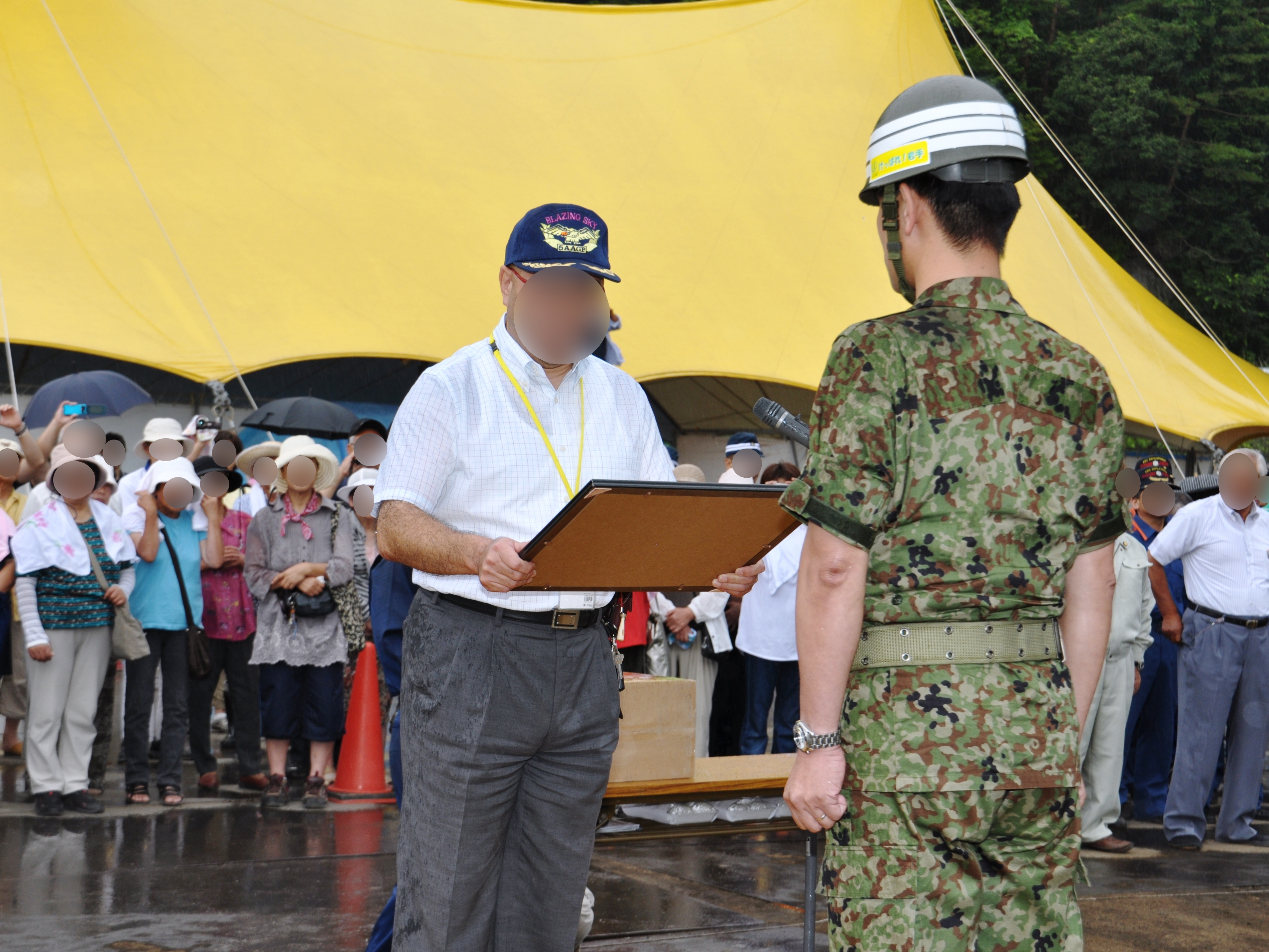 大槌町から自衛隊へ感謝状を贈呈している様子