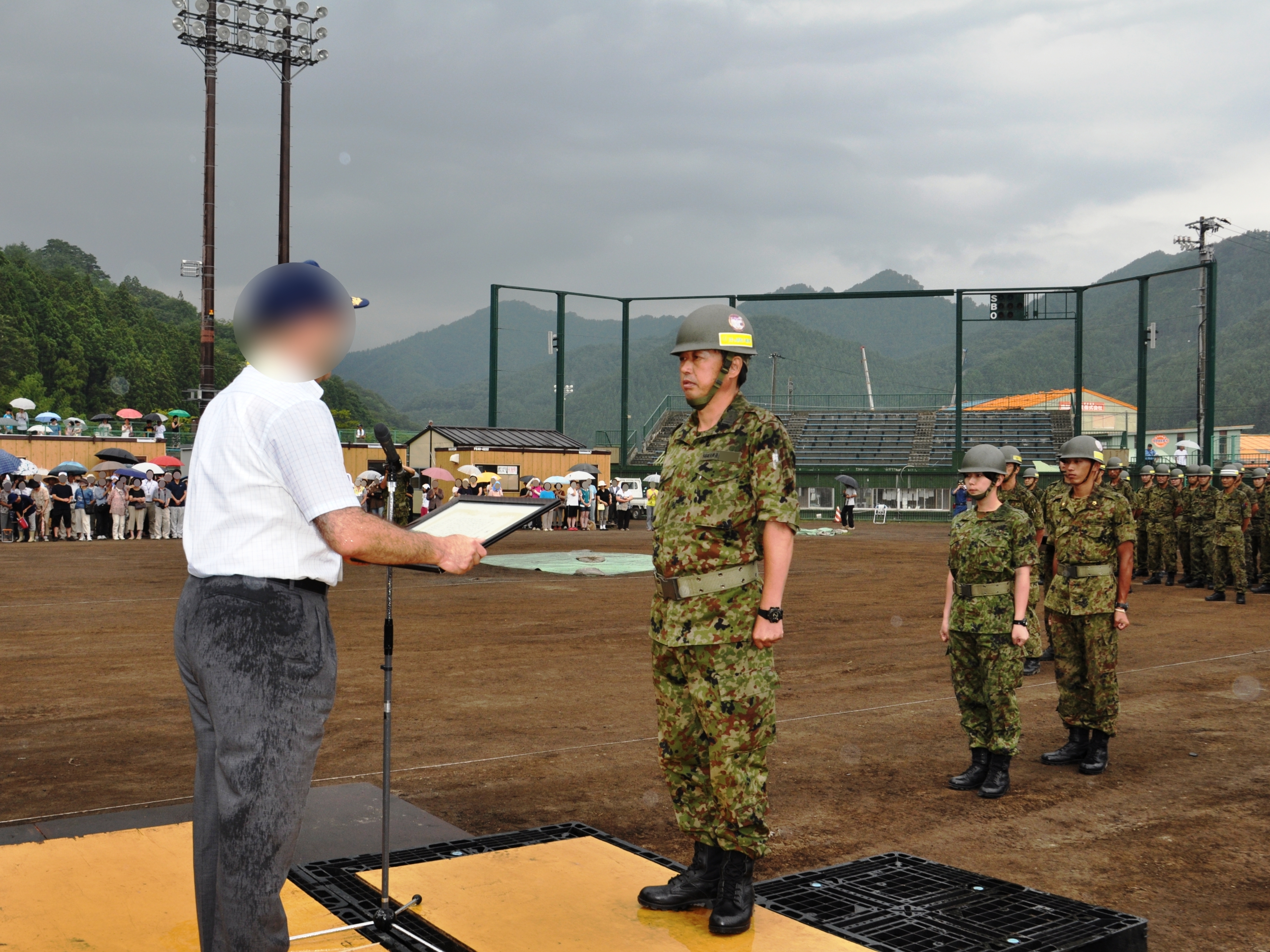 大槌町から自衛隊へ感謝状を贈呈している様子