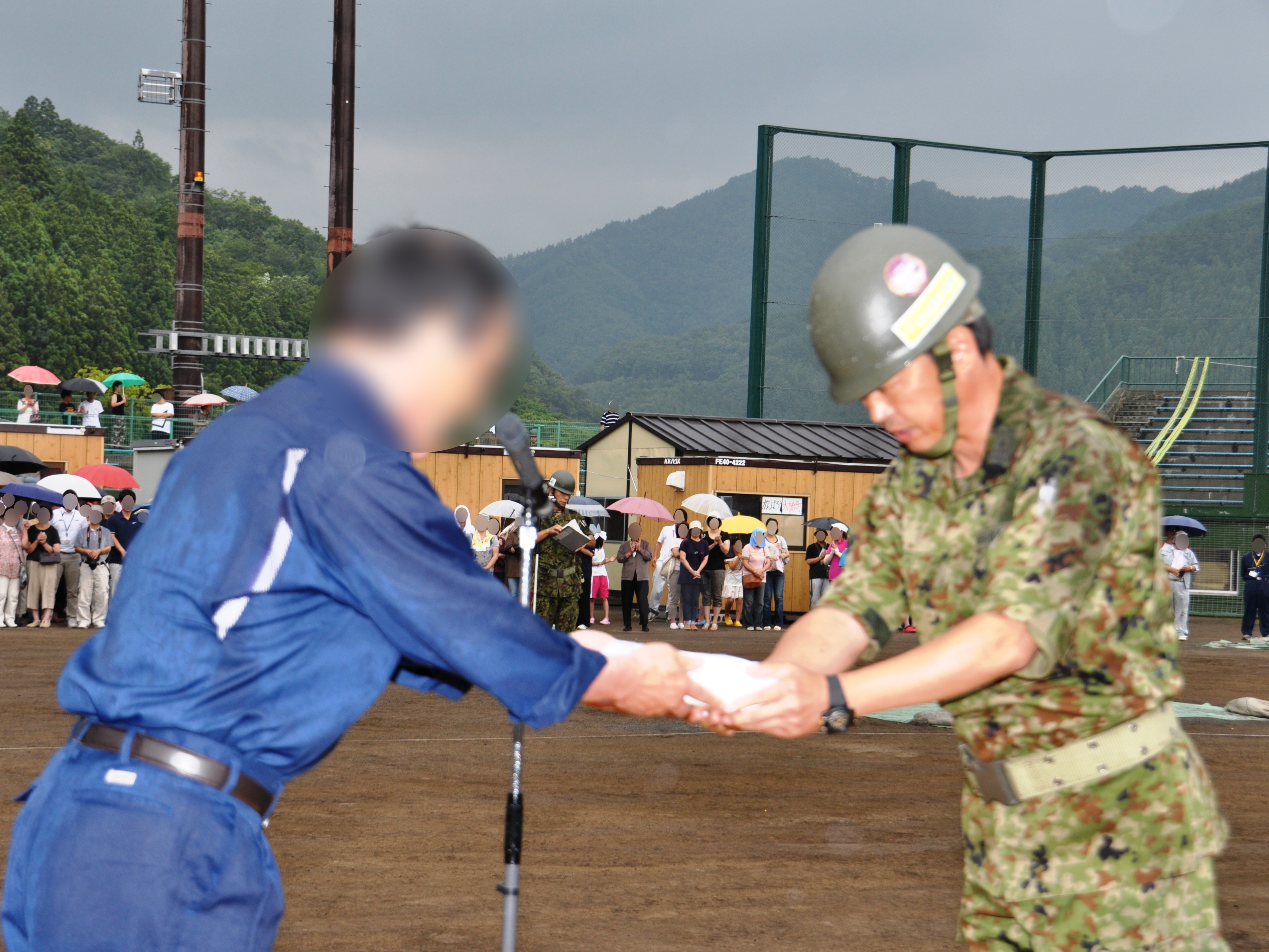 大槌町から自衛隊へ感謝状を贈呈している様子