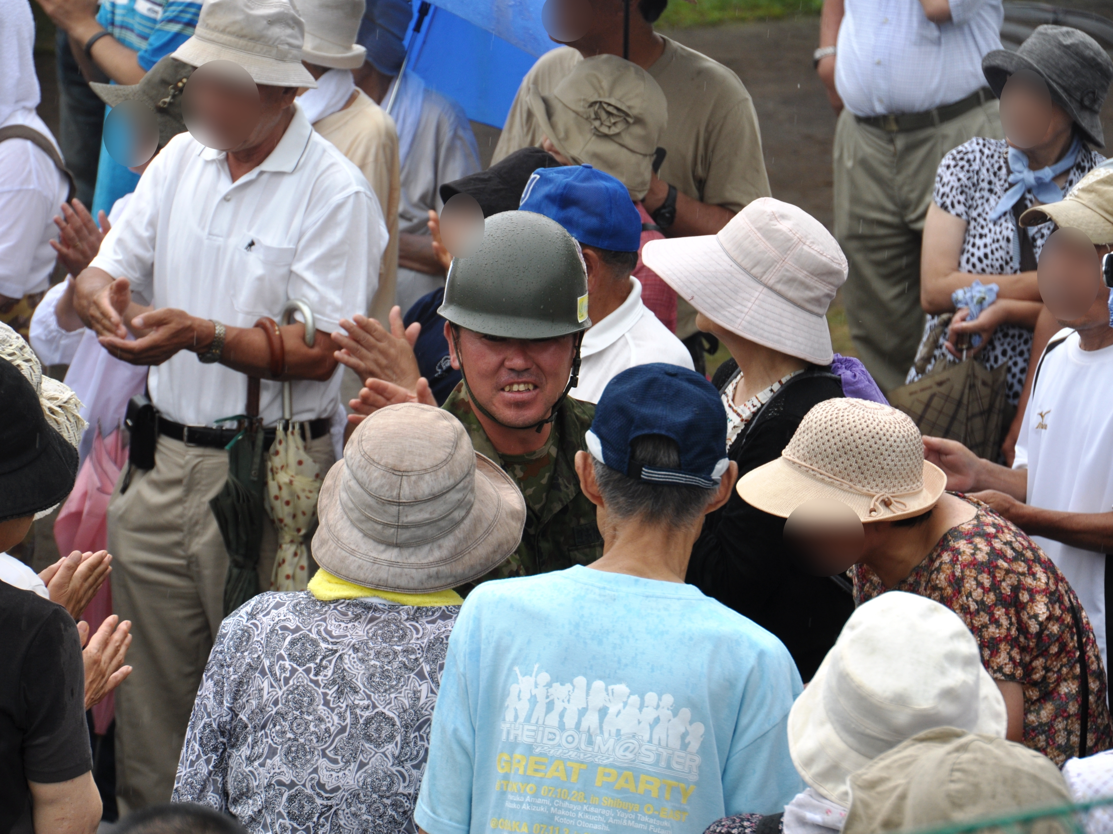 自衛隊員一人一人と地元の方との送別の様子