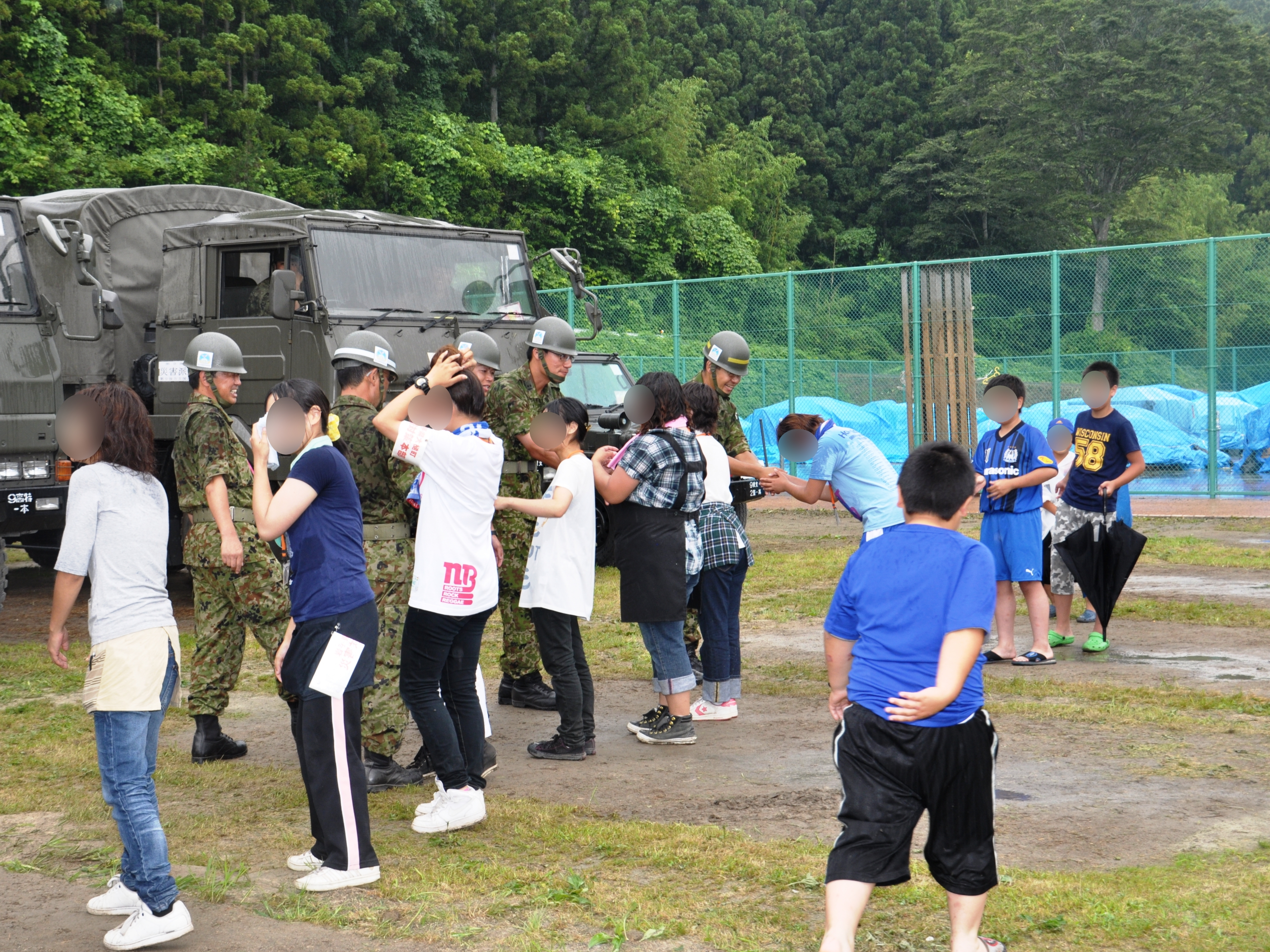 自衛隊員一人一人と地元の方との送別の様子