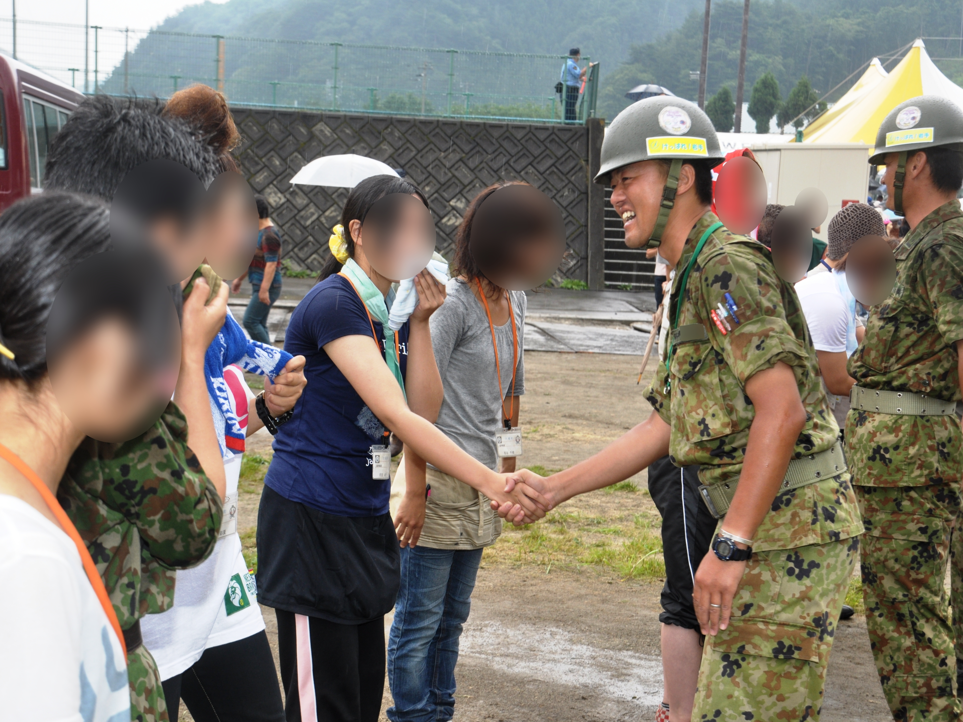 自衛隊員一人一人と地元の方との送別の様子