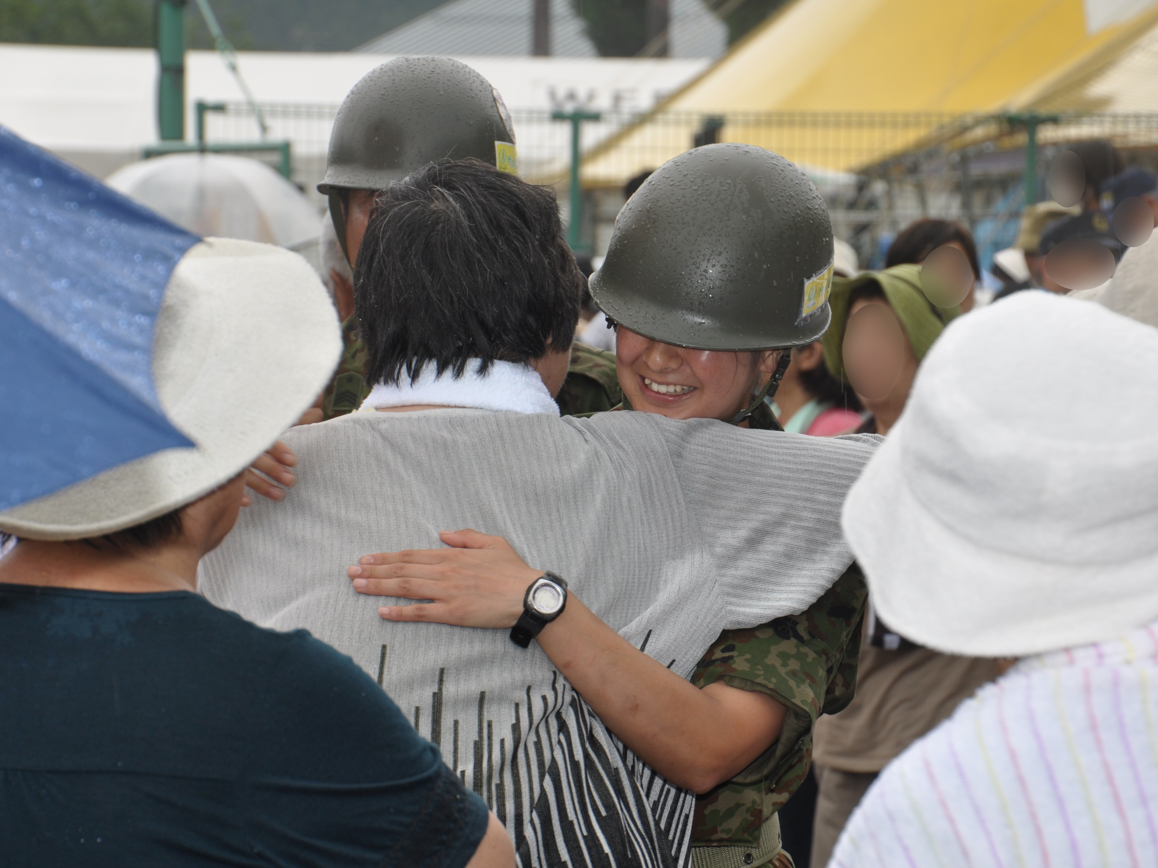 自衛隊員一人一人と地元の方との送別の様子