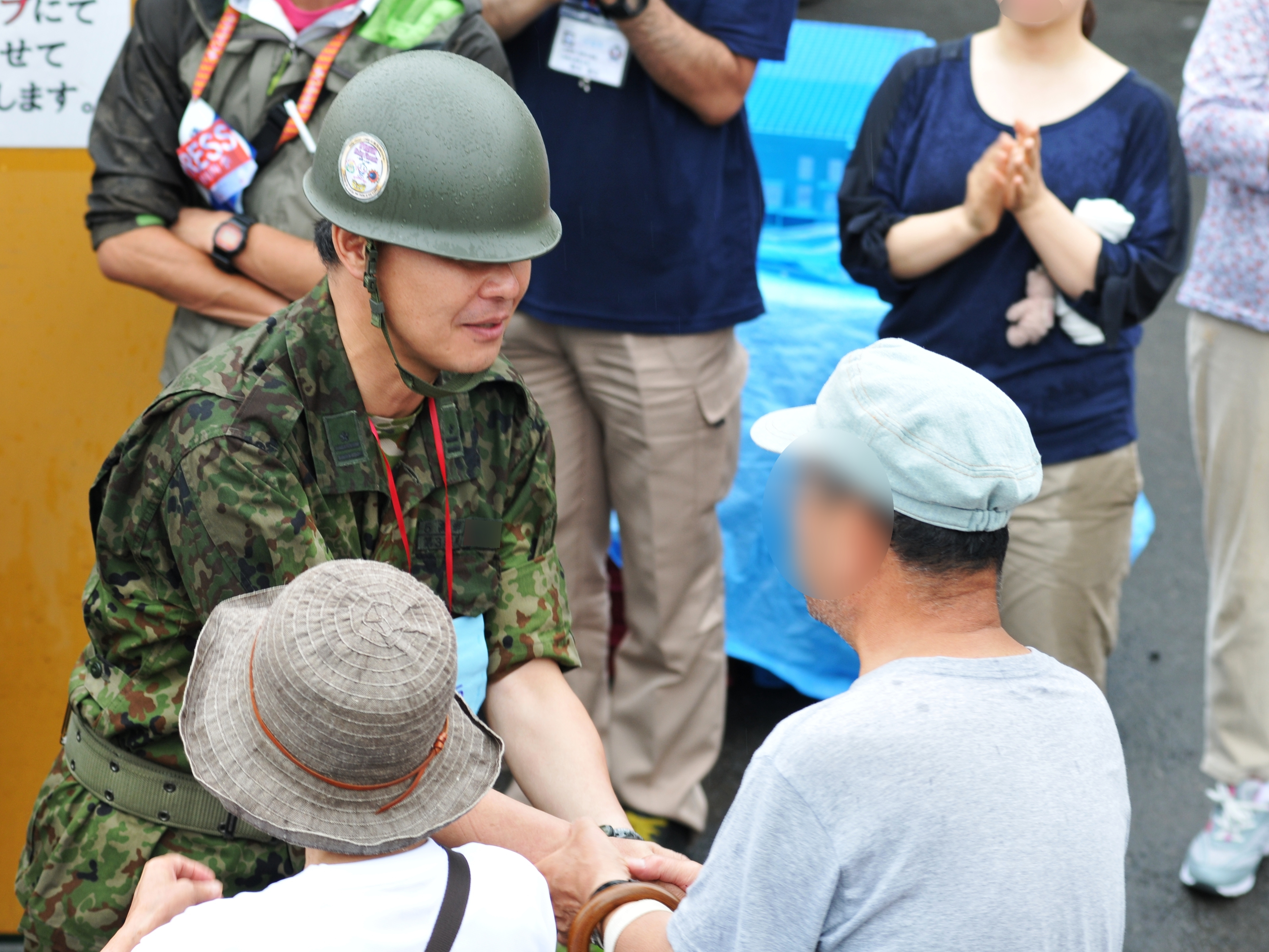自衛隊員一人一人と地元の方との送別の様子