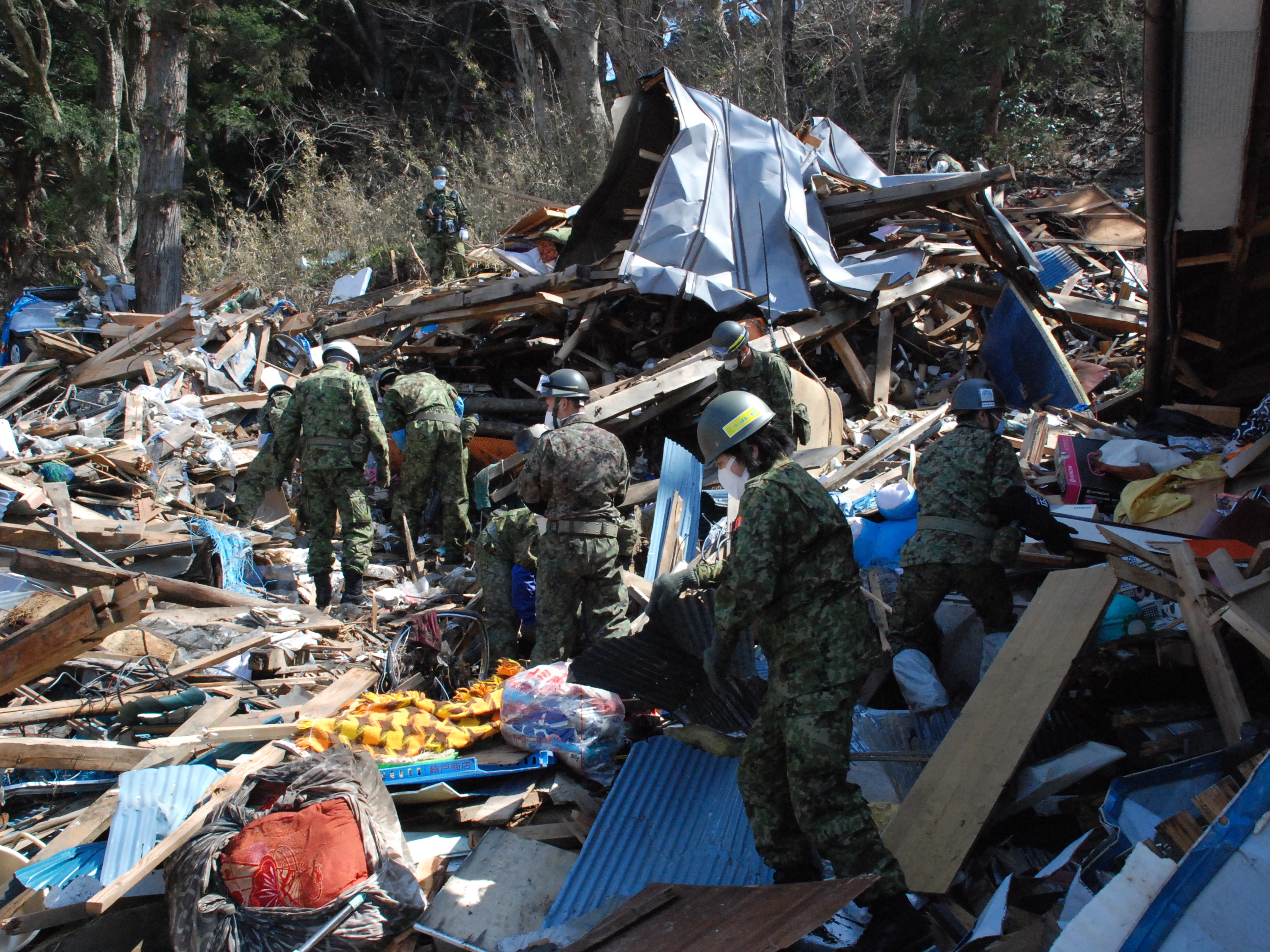 捜索活動の様子 拡大表示 ダウンロード 識別子 : 1976 タイトルよみ : ソウサクカツドウノヨウス 說明・要約 : 押し重なったガレキの中で捜索活動している自衛隊員の様子 作成者(撮影者) : 自衛隊 作成者(撮影者)よみ : ジエイタイ 提供者 : 自衛隊 提供者よみ : ジエイタイ 撮影(作成)場所 : 岩手県上閉伊郡大槌町 大槌町 撮影(作成)場所よみ : イワテケンカミヘイグンオオツチチョウ オオツチチョウ 作成日・撮影日 : 2011年 4月 10日 カテゴリー : 捜索活動 地域 : その他 備考 : 一般公開