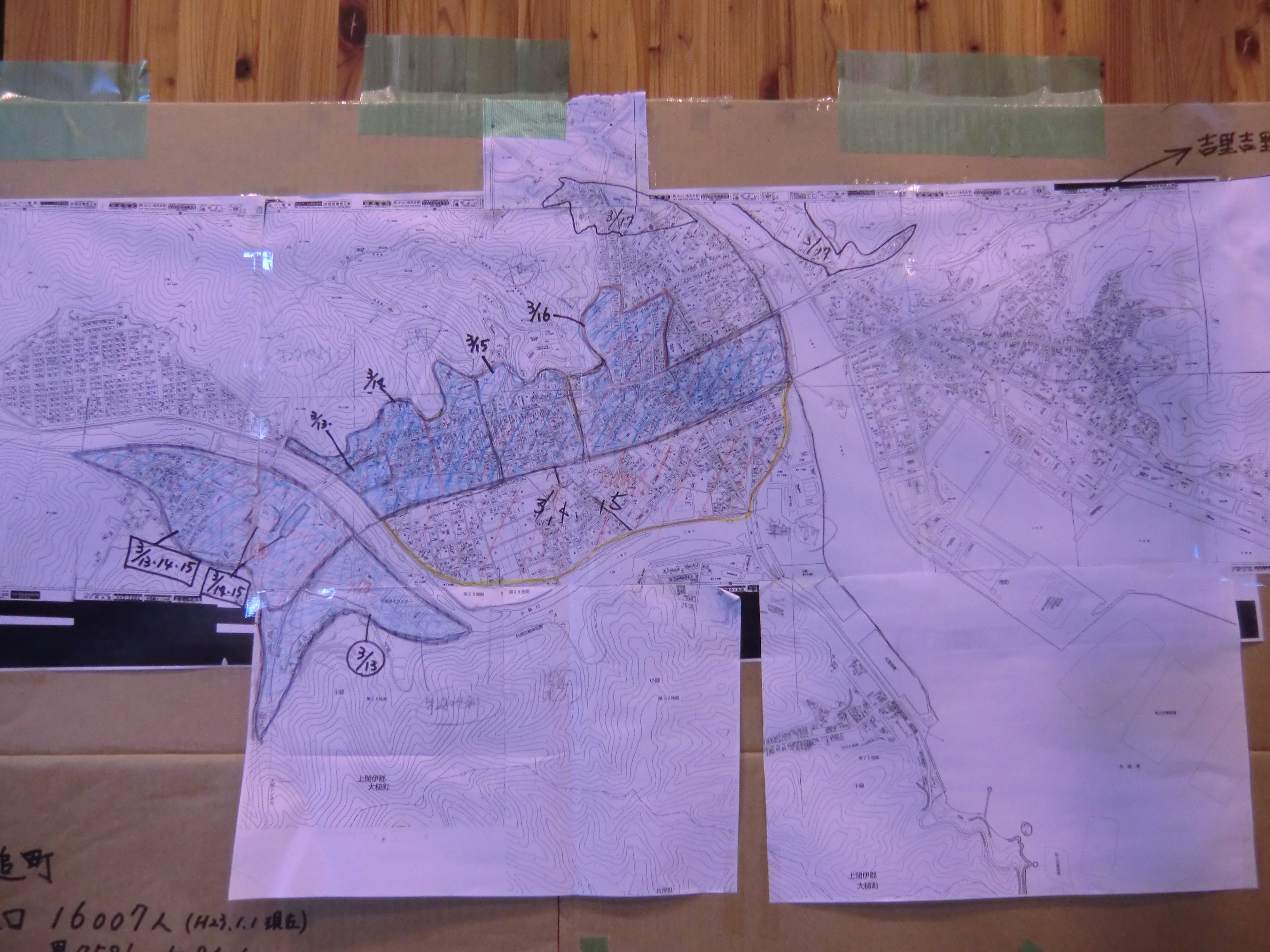大槌町地図 拡大表示 ダウンロード 識別子 : 2009 タイトルよみ : オオツチチョウチズ 說明・要約 : 壁に貼られている大槌町の地図に記載されている活動予定地区 作成者(撮影者) : 堺市消防局 作成者(撮影者)よみ : サカイシショウボウキョク 提供者 : 堺市消防局 提供者よみ : サカイシショウボウキョク 撮影(作成)場所 : 岩手県遠野市 撮影(作成)場所よみ : イワテケントオノシ 作成日・撮影日 : 2011年 3月 19日 カテゴリー : 救助活動 捜索 地域 : その他 備考 : 堺市消防局提供