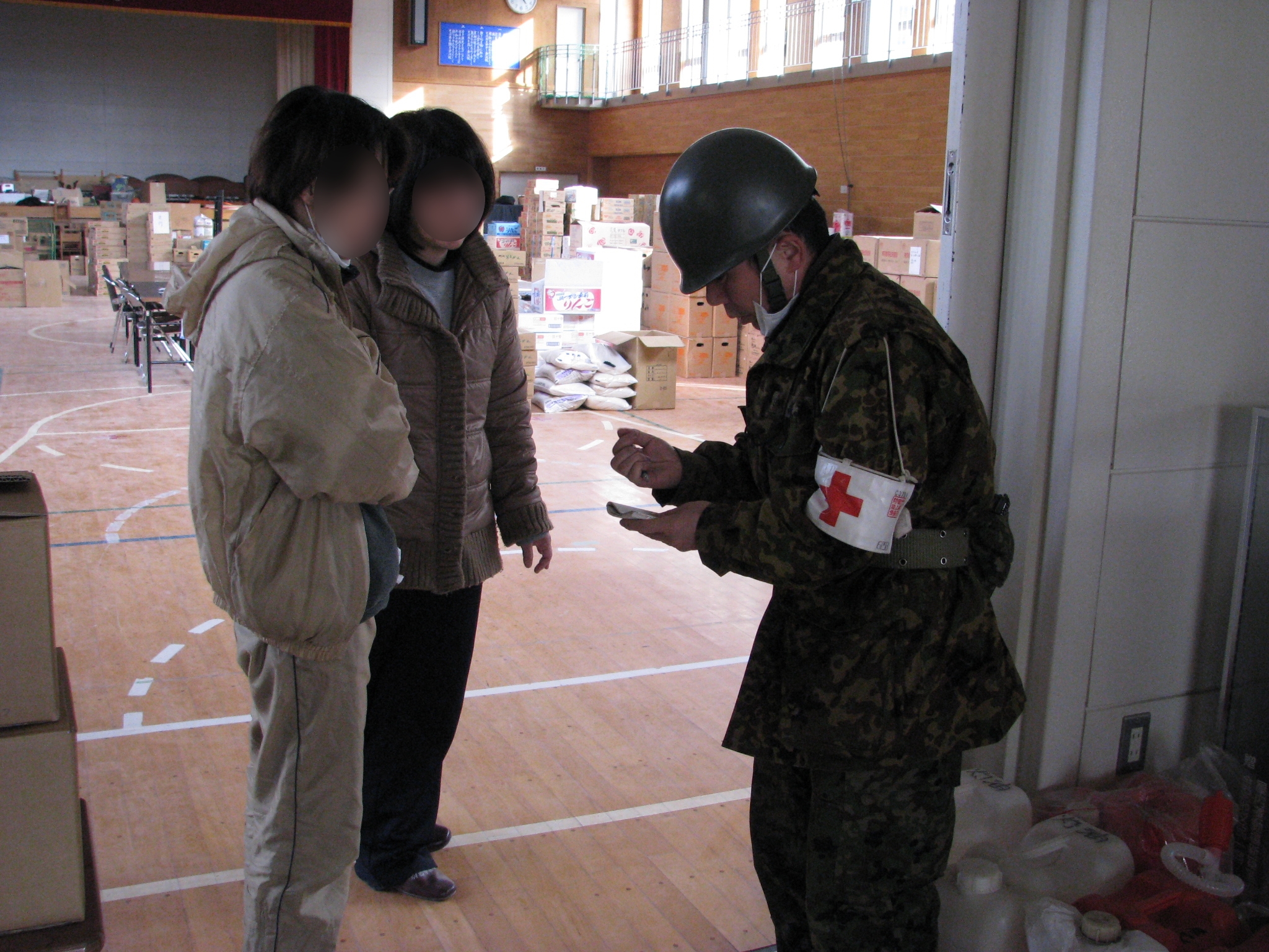 自衛隊員による避難所での衛生問診の様子