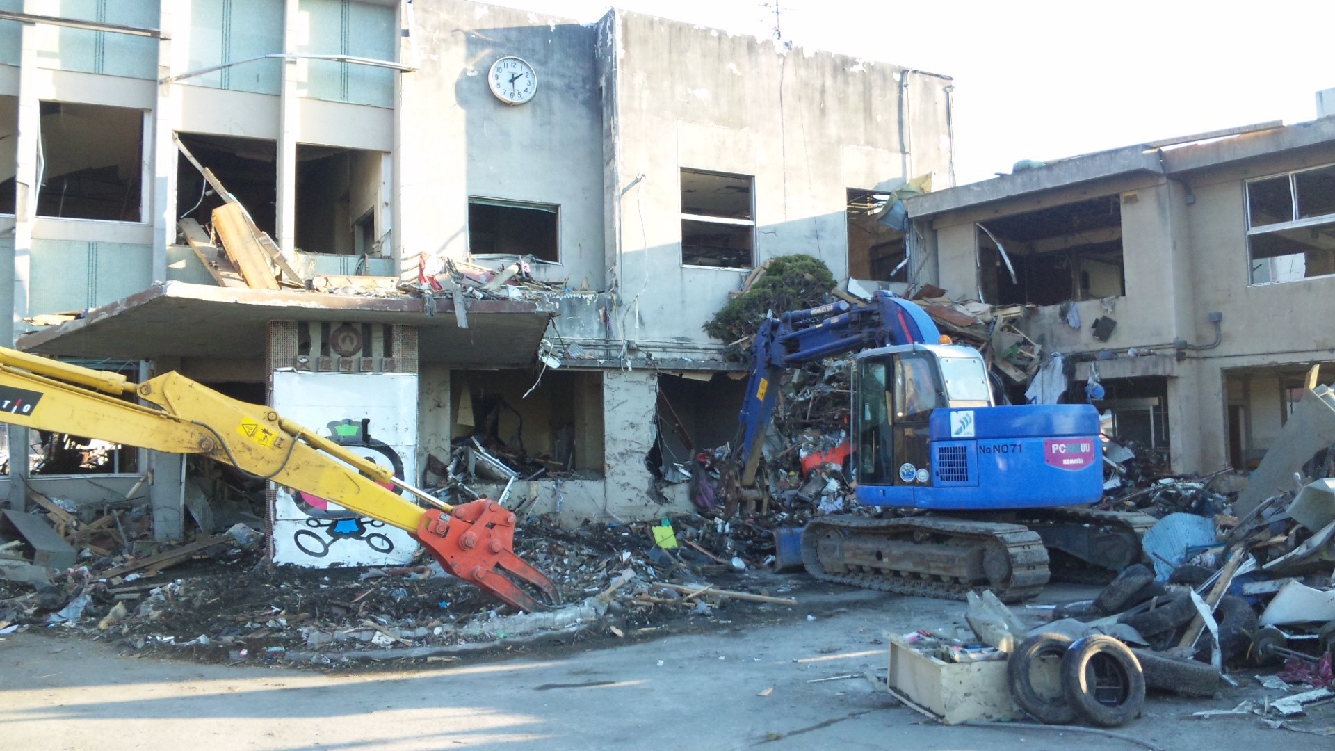 建物の被災状況 拡大表示 ダウンロード 識別子 : 2311 タイトルよみ : タテモノノヒサイジョウキョウ 說明・要約 : 旧大槌町役場周辺のガレキ処理の様子 作成者(撮影者) : 非公開 作成者(撮影者)よみ : ヒコウカイ 提供者 : 非公開 提供者よみ : ヒコウカイ 撮影(作成)場所 : 岩手県上閉伊郡大槌町 新町 撮影(作成)場所よみ : イワテケンカミヘイグンオオツチチョウ シンチョウ 作成日・撮影日 : 2011年 4月 6日 カテゴリー : がれき処理 地域 : 町方地区 備考 : 震災事象 ガレキ・啓開・インフラ復旧 > ガレキ処理 > ガレキ処理