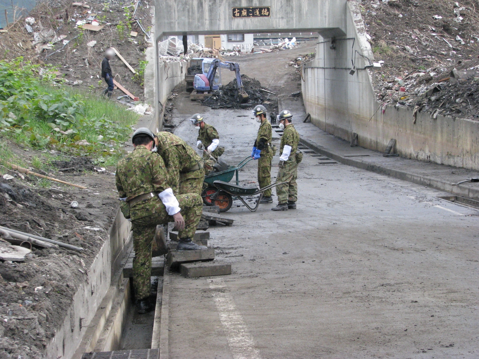 側溝整備作業 拡大表示 ダウンロード 識別子 : 2334 タイトルよみ : ソッコウセイビサギョウ 說明・要約 : 道路側溝整備作業中の様子 作成者(撮影者) : 自衛隊 作成者(撮影者)よみ : ジエイタイ 提供者 : 自衛隊 提供者よみ : ジエイタイ 撮影(作成)場所 : 岩手県上閉伊郡大槌町 撮影(作成)場所よみ : イワテケンカミヘイグンオオツチチョウ 作成日・撮影日 : 2011年 5月 24日 カテゴリー : がれき処理 その他 地域 : 桜木町・花輪田地区 備考 : 震災事象 ガレキ・啓開・インフラ復旧 > ガレキ処理 > ガレキ処理