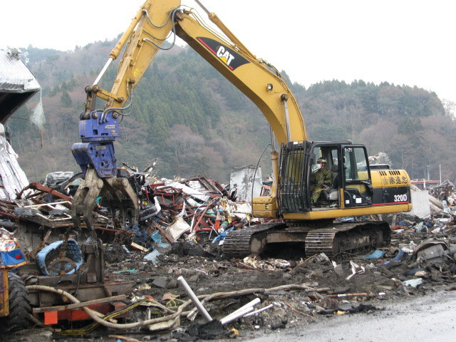 ガレキ撤去作業 拡大表示 ダウンロード 識別子 : 2373 タイトルよみ : ガレキテッキョサギョウ 說明・要約 : 重機によるガレキ処理作業の様子 作成者(撮影者) : 自衛隊 作成者(撮影者)よみ : ジエイタイ 提供者 : 自衛隊 提供者よみ : ジエイタイ 撮影(作成)場所 : 岩手県上閉伊郡大槌町 大槌町 撮影(作成)場所よみ : イワテケンカミヘイグンオオツチチョウ オオツチチョウ 作成日・撮影日 : 2011年 4月 27日 カテゴリー : がれき処理 その他 地域 : その他 備考 : 震災事象 ガレキ・啓開・インフラ復旧 > ガレキ処理 > ガレキ処理