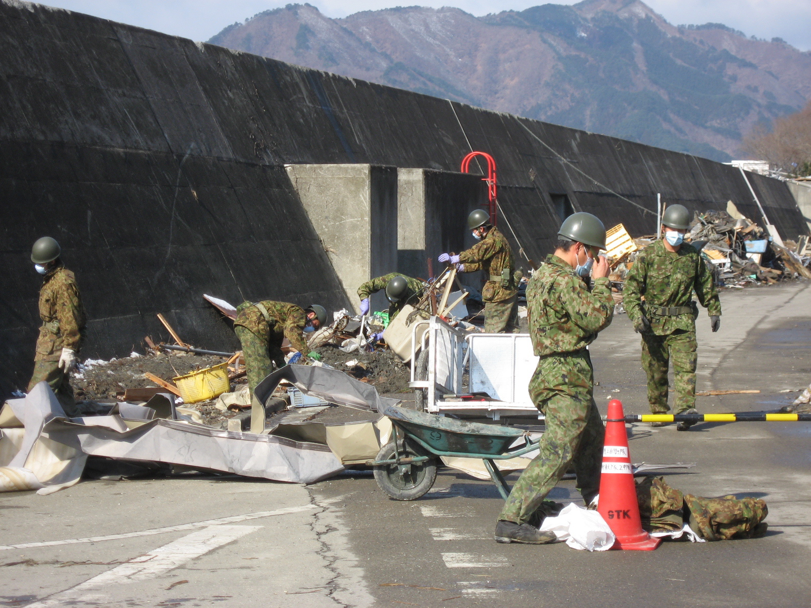 ガレキ撤去作業 拡大表示 ダウンロード 識別子 : 2376 タイトルよみ : ガレキテッキョサギョウ 說明・要約 : ガレキの撤去作業をしている自衛隊員 作成者(撮影者) : 自衛隊 作成者(撮影者)よみ : ジエイタイ 提供者 : 自衛隊 提供者よみ : ジエイタイ 撮影(作成)場所 : 岩手県上閉伊郡大槌町 撮影(作成)場所よみ : イワテケンカミヘイグンオオツチチョウ 作成日・撮影日 : 2011年 3月 28日 カテゴリー : がれき処理 その他 地域 : 安渡地区 備考 : 震災事象 ガレキ・啓開・インフラ復旧 > ガレキ処理 > ガレキ処理