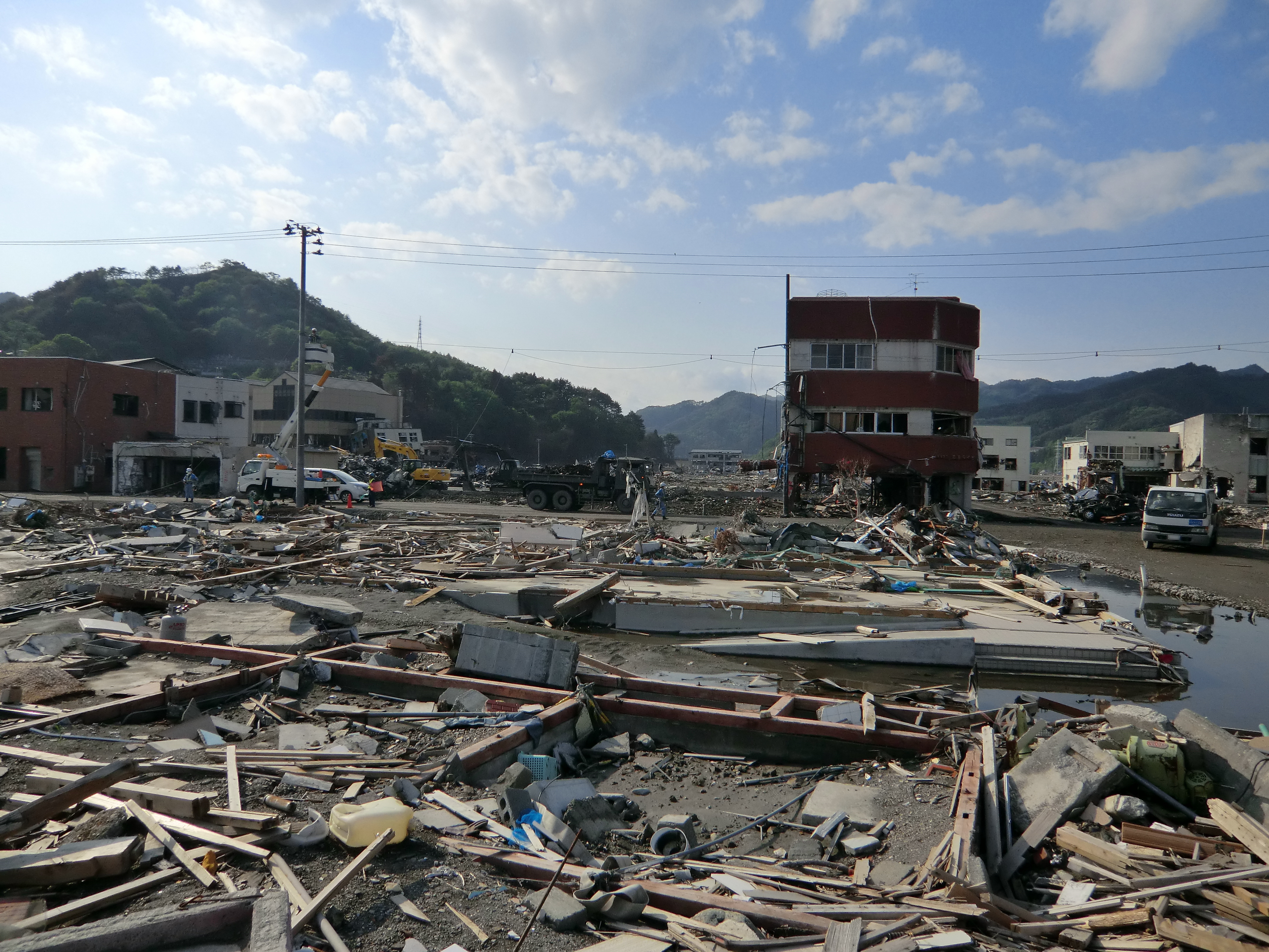 ガレキ撤去、電話回線復旧工事 拡大表示 ダウンロード 識別子 : 2382 タイトルよみ : ガレキテッキョ、デンワカイセンフッキュウコウジ 說明・要約 : 重機によるガレキ撤去作業、電話回線の復旧工事 作成者(撮影者) : 大槌町 作成者(撮影者)よみ : オオツチチョウ 提供者 : 提供者よみ : 撮影(作成)場所 : 岩手県上閉伊郡大槌町 大町 撮影(作成)場所よみ : イワテケンカミヘイグンオオツチチョウ オオツチ 作成日・撮影日 : 2011年 カテゴリー : がれき処理 郵便・電話 地域 : 町方地区 備考 : 震災事象 ガレキ・啓開・インフラ復旧 > ガレキ処理 > ガレキ処理