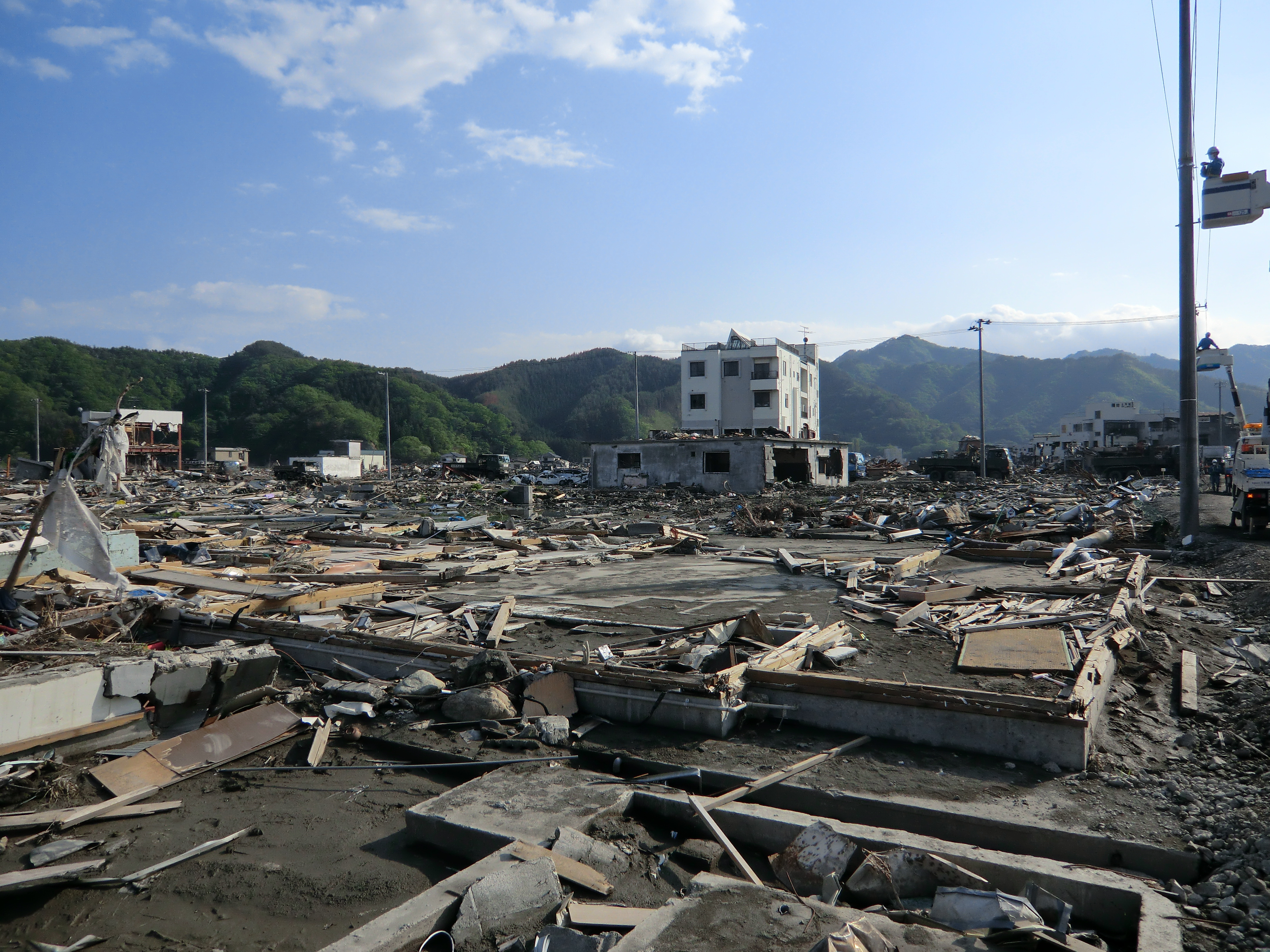 ガレキ撤去、電話回線復旧工事 拡大表示 ダウンロード 識別子 : 2386 タイトルよみ : ガレキテッキョ、デンワカイセンフッキュウコウジ 說明・要約 : 重機によるガレキ撤去作業、電話回線の復旧工事 作成者(撮影者) : 大槌町 作成者(撮影者)よみ : オオツチチョウ 提供者 : 提供者よみ : 撮影(作成)場所 : 岩手県上閉伊郡大槌町 大町 撮影(作成)場所よみ : イワテケンカミヘイグンオオツチチョウ オオマチ 作成日・撮影日 : 2011年 カテゴリー : がれき処理 郵便・電話 地域 : 町方地区 備考 : 震災事象 ガレキ・啓開・インフラ復旧 > ガレキ処理 > ガレキ処理