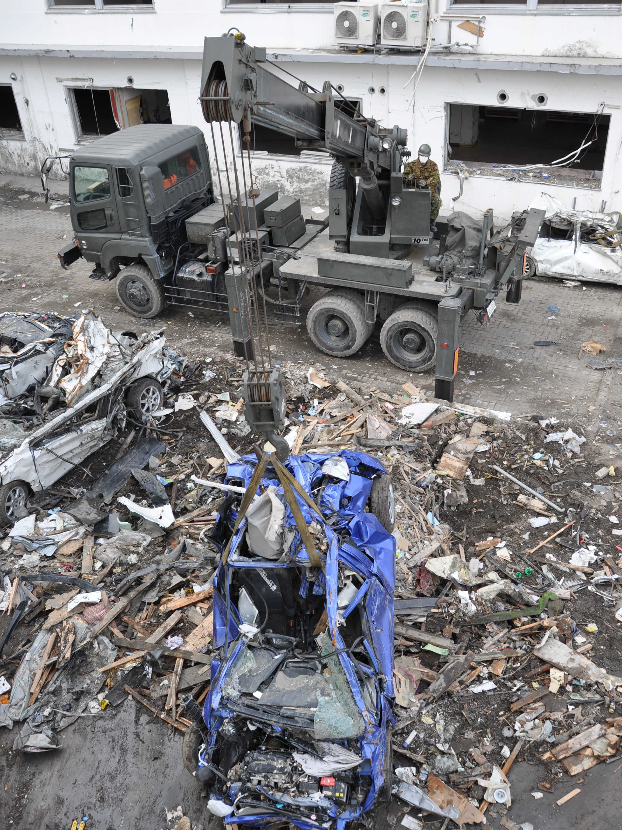 ガレキ撤去作業の様子 拡大表示 ダウンロード 識別子 : 2538 タイトルよみ : ガレキテッキョサギョウノヨウス 說明・要約 : 重機を使って被災した車を撤去している様子 作成者(撮影者) : 自衛隊 作成者(撮影者)よみ : ジエイタイ 提供者 : 自衛隊 提供者よみ : ジエイタイ 撮影(作成)場所 : 岩手県上閉伊郡大槌町 大槌町 撮影(作成)場所よみ : イワテケンカミヘイグンオオツチチョウ オオツチチョウ 作成日・撮影日 : 2011年 4月 26日 カテゴリー : がれき処理 その他 地域 : その他 備考 : 一般公開 震災事象 ガレキ・啓開・インフラ復旧 > ガレキ処理 > ガレキ処理