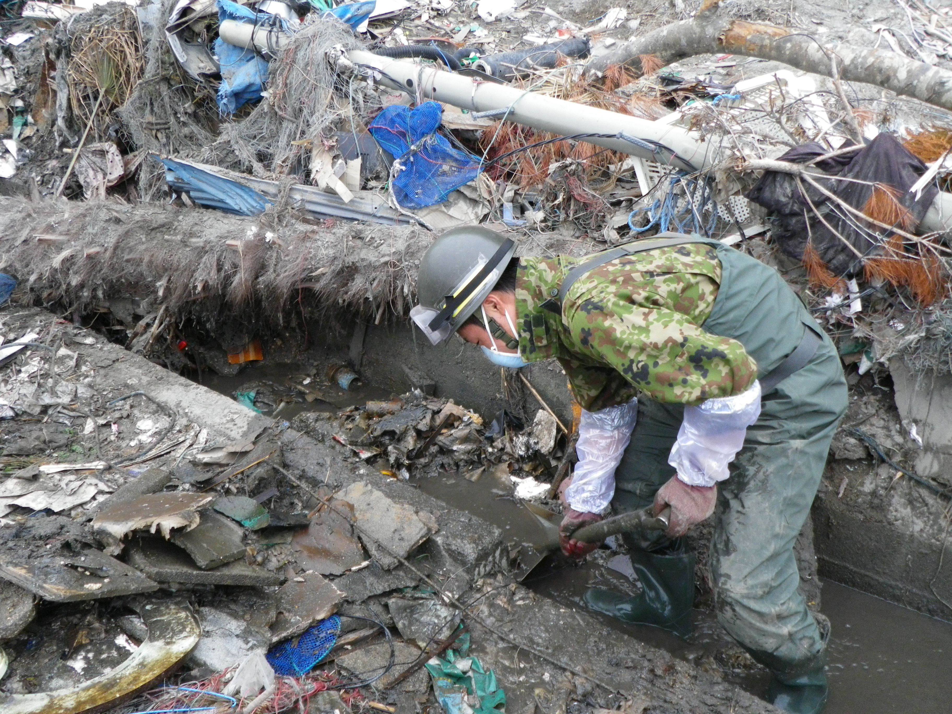 側溝整備作業の様子 拡大表示 ダウンロード 識別子 : 2542 タイトルよみ : ソッコウセイビサギョウノヨウス 說明・要約 : 側溝整備作業をしている自衛隊員の様子 作成者(撮影者) : 自衛隊 作成者(撮影者)よみ : ジエイタイ 提供者 : 自衛隊 提供者よみ : ジエイタイ 撮影(作成)場所 : 岩手県上閉伊郡大槌町 赤浜 撮影(作成)場所よみ : イワテケンカミヘイグンオオツチチョウ アカハマ 作成日・撮影日 : 2011年 5月 12日 カテゴリー : がれき処理 その他 地域 : 赤浜地区 備考 : 一般公開 震災事象 ガレキ・啓開・インフラ復旧 > ガレキ処理 > ガレキ処理