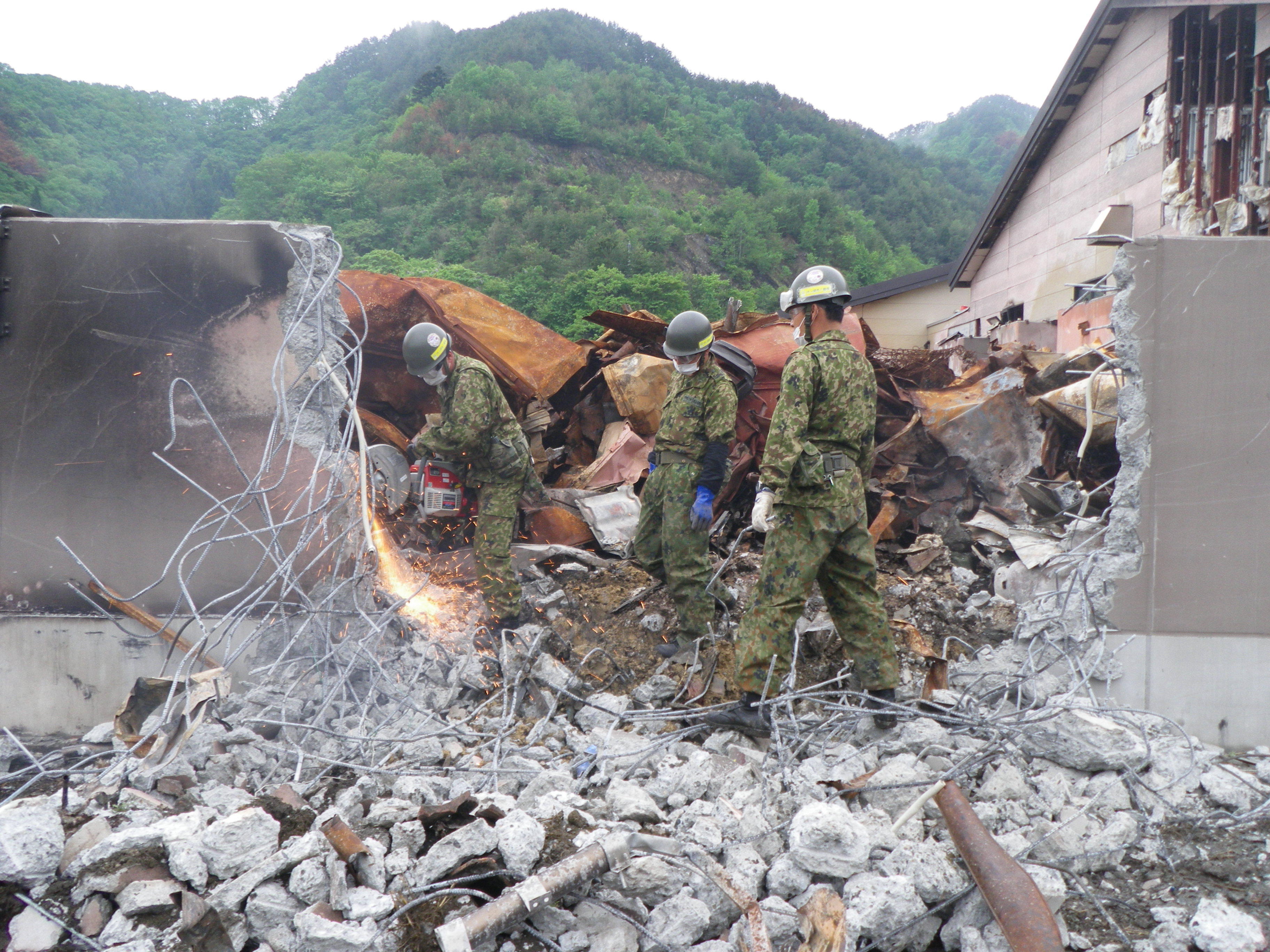 ガレキ撤去作業の様子 拡大表示 ダウンロード 識別子 : 2544 タイトルよみ : ガレキテッキョサギョウノヨウス 說明・要約 : MASTの湯の周辺のガレキ撤去作業をしている自衛隊員 作成者(撮影者) : 自衛隊 作成者(撮影者)よみ : ジエイタイ 提供者 : 自衛隊 提供者よみ : ジエイタイ 撮影(作成)場所 : 岩手県上閉伊郡大槌町 マスト 撮影(作成)場所よみ : イワテケンカミヘイグンオオツチチョウ マスト 作成日・撮影日 : 2011年 5月 22日 カテゴリー : がれき処理 その他 地域 : 桜木町・花輪田地区 備考 : 一般公開 震災事象 ガレキ・啓開・インフラ復旧 > ガレキ処理 > ガレキ処理