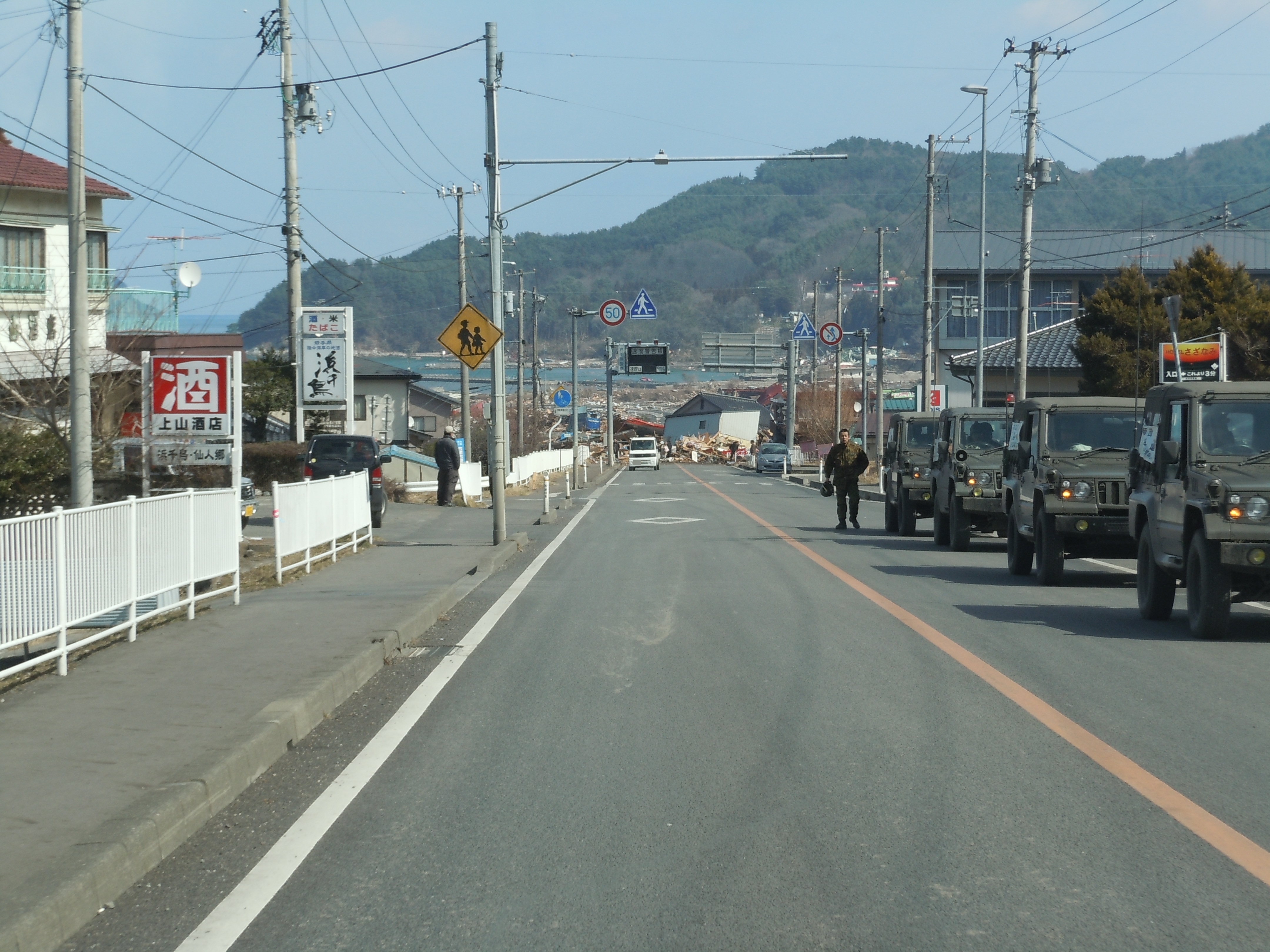 自衛隊車両 拡大表示 ダウンロード 識別子 : 2566 タイトルよみ : ジエイタイシャリョウ 說明・要約 : 国道45号線吉里吉里地内での自衛隊車両 作成者(撮影者) : 大槌町 作成者(撮影者)よみ : オオツチチョウ 提供者 : 提供者よみ : 撮影(作成)場所 : 岩手県上閉伊郡大槌町 吉里吉里 撮影(作成)場所よみ : イワテケンカミヘイグンオオツチチョウ キリキリ 作成日・撮影日 : 2011年 3月 12日 カテゴリー : がれき処理 復旧・復興 その他 地域 : 吉里吉里地区 備考 : 関連アーカイブ 吉里吉里1丁目バス停付近 吉里吉里1丁目付近、被災した2階建ての建物 震災事象 ガレキ・啓開・インフラ復旧 > 道路啓開 > 道路啓開