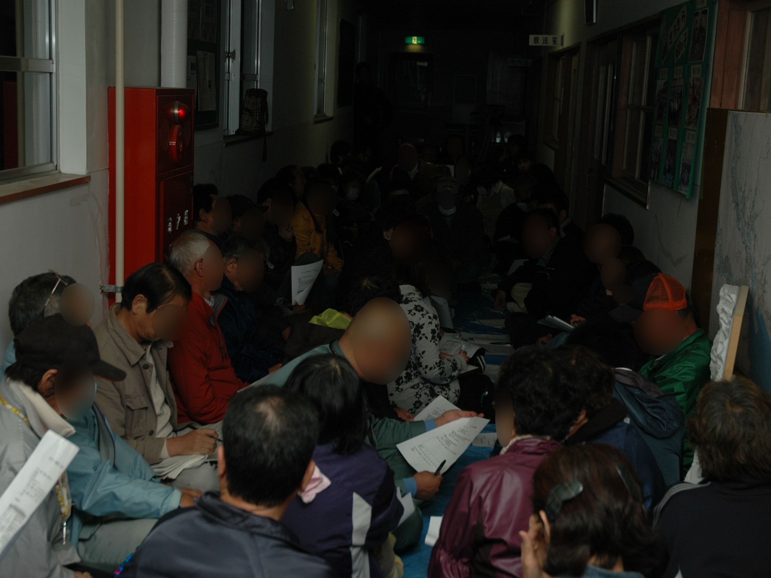 安渡小学校の校舎内廊下で開催された第1回大槌まちづくり住民会議の様子