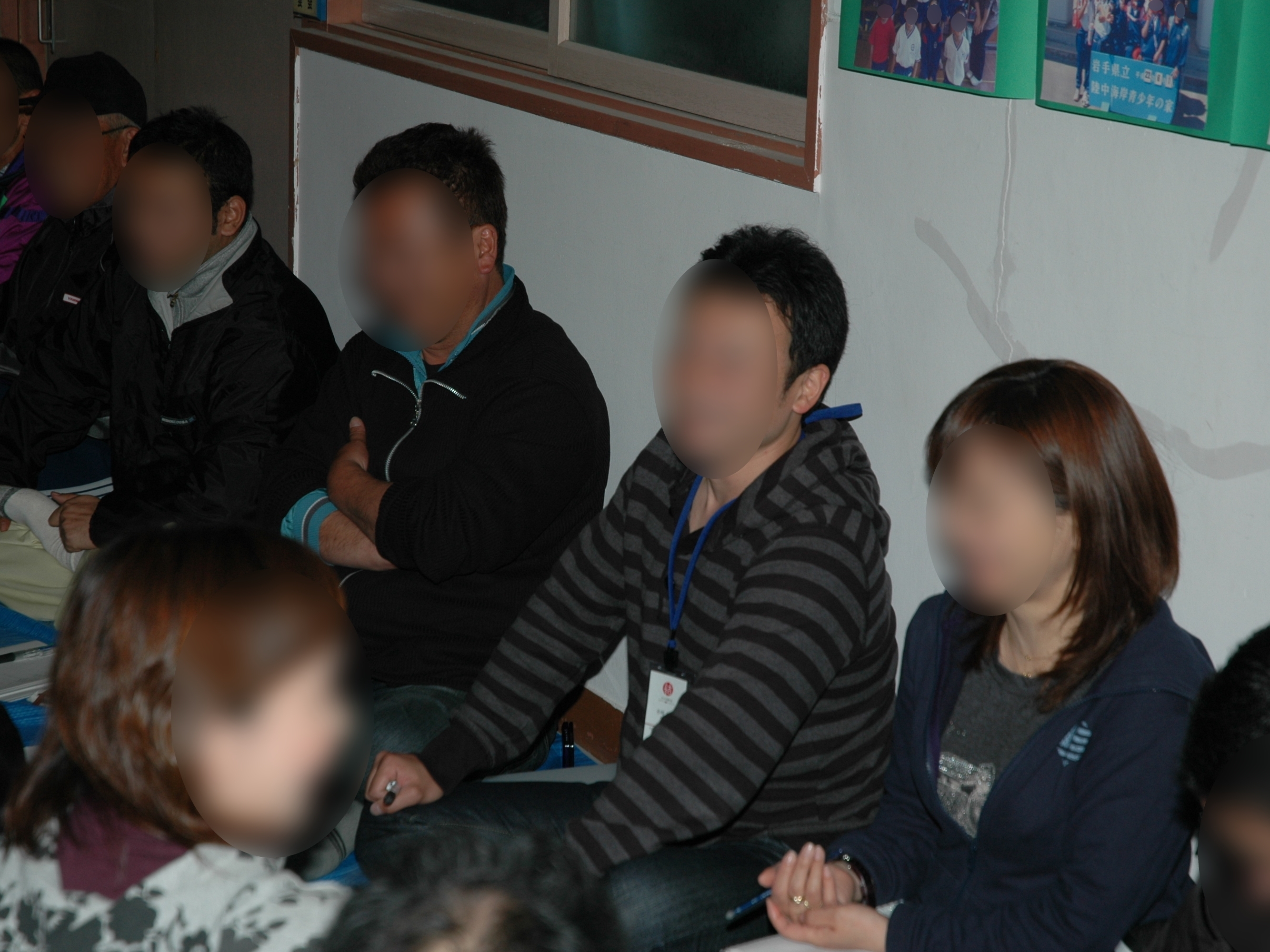 安渡小学校の校舎内廊下で開催された第1回大槌まちづくり住民会議の様子