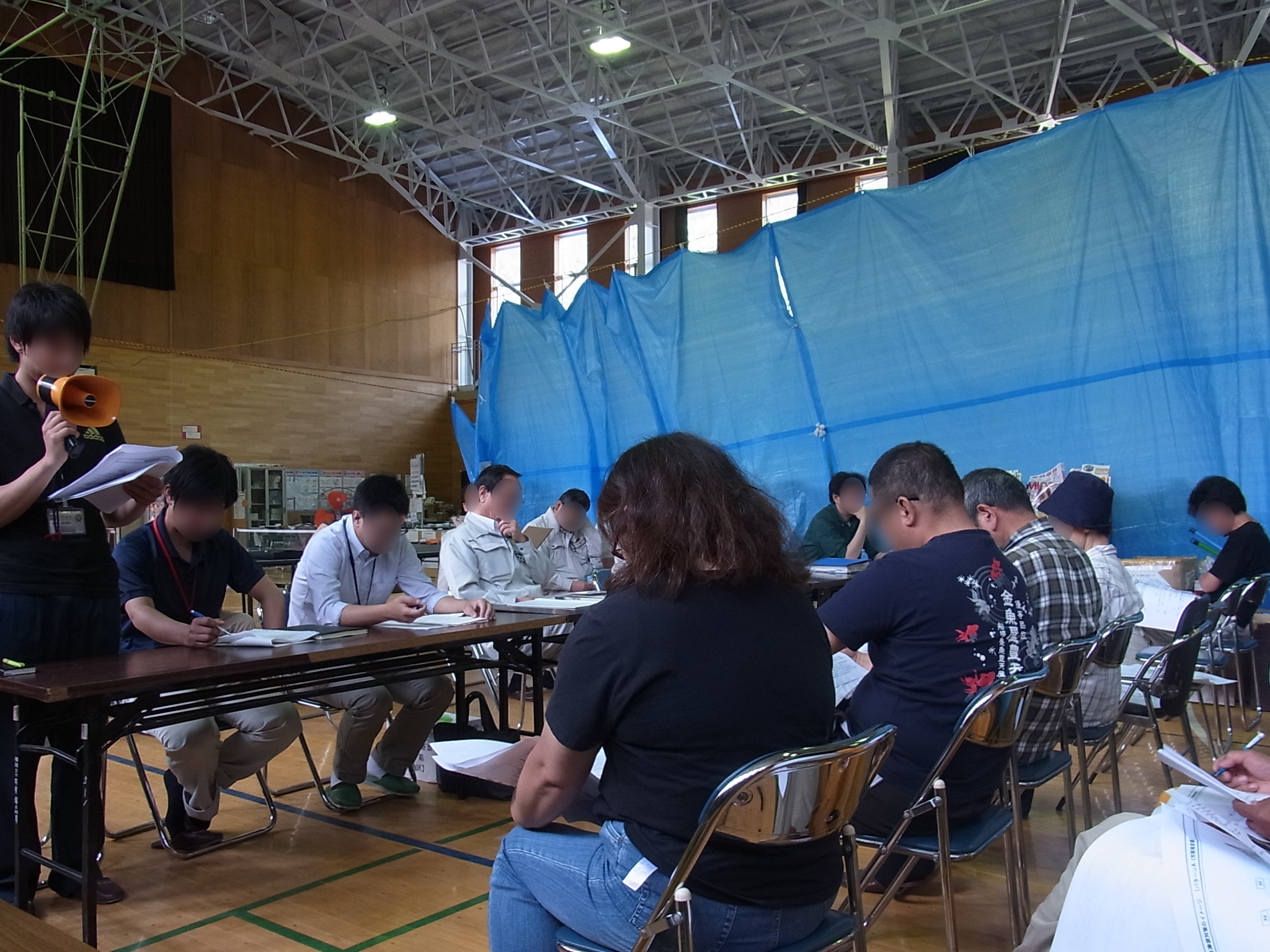 旧金沢小学校体育館で開催された町民懇談会の様子