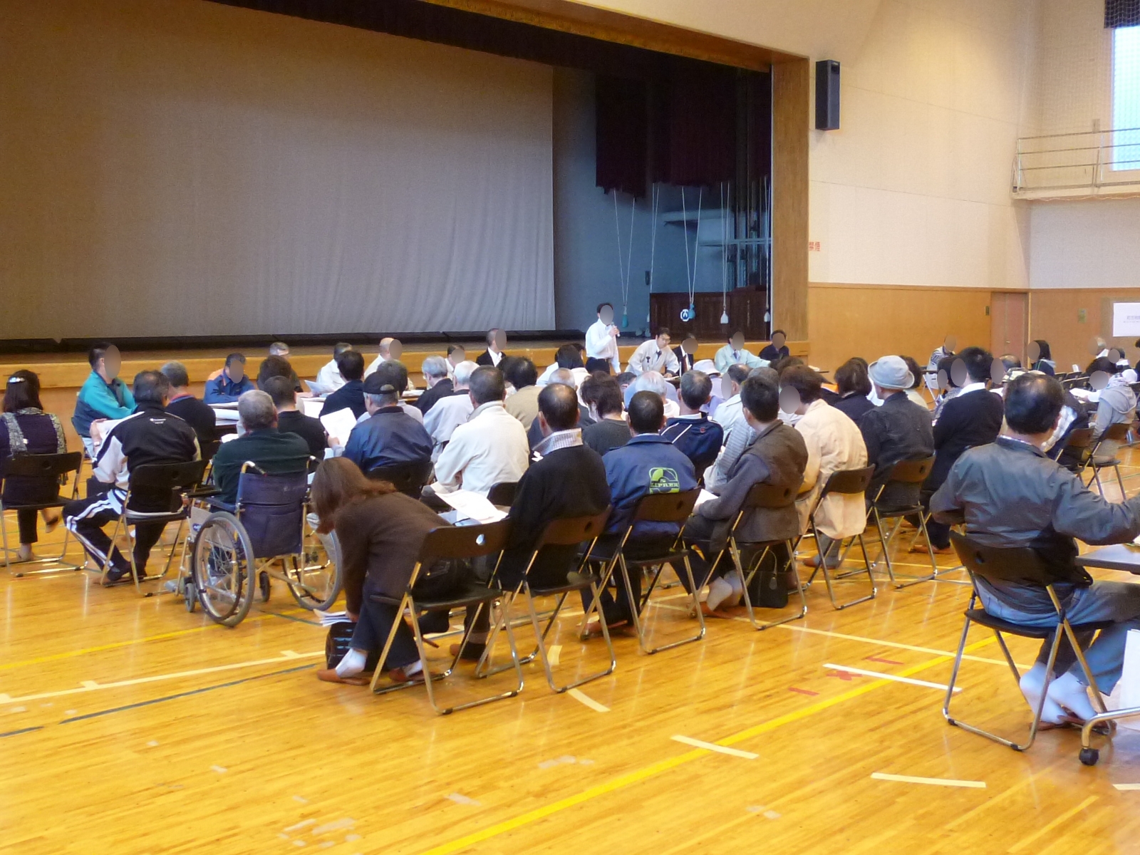 城山公園体育館で開催された第1回町方、桜木町・花輪田、小枕・伸松、沢山・大ケ口地域復興協議会の様子