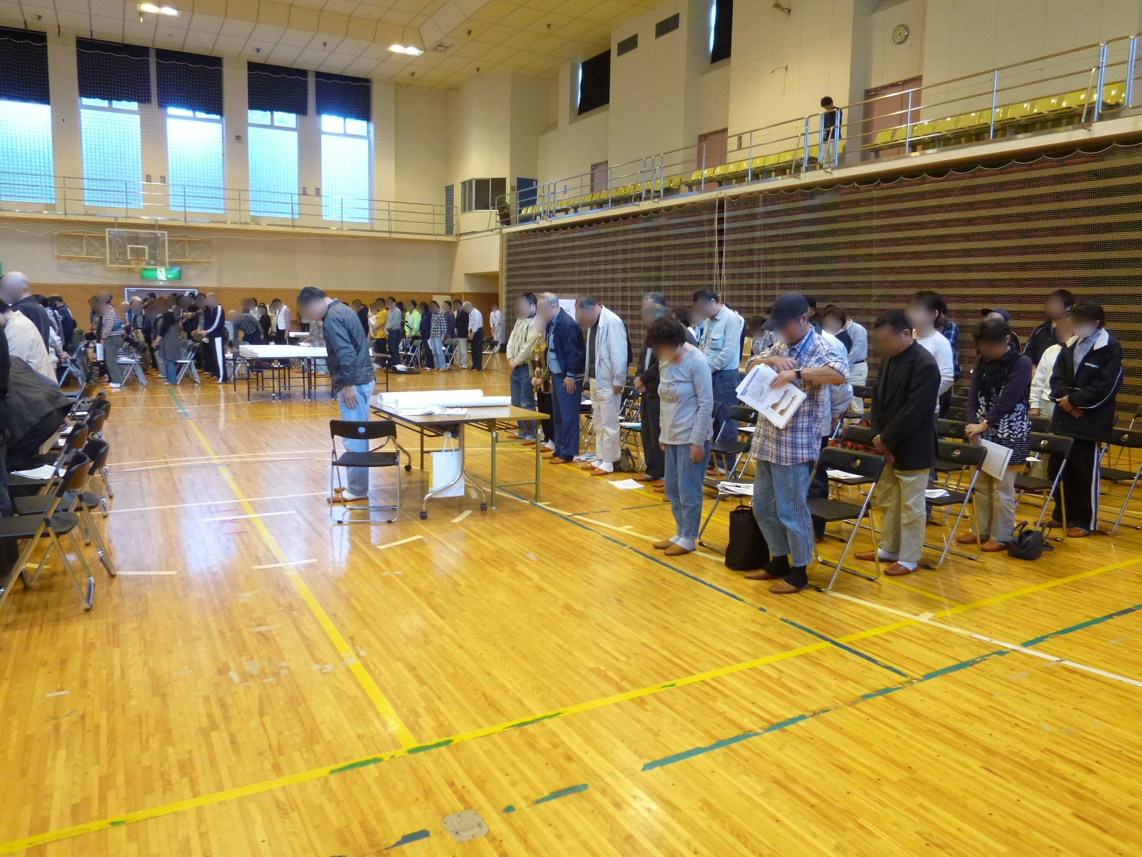 城山公園体育館で開催された第1回町方、桜木町・花輪田、小枕・伸松、沢山・大ケ口地域復興協議会の様子